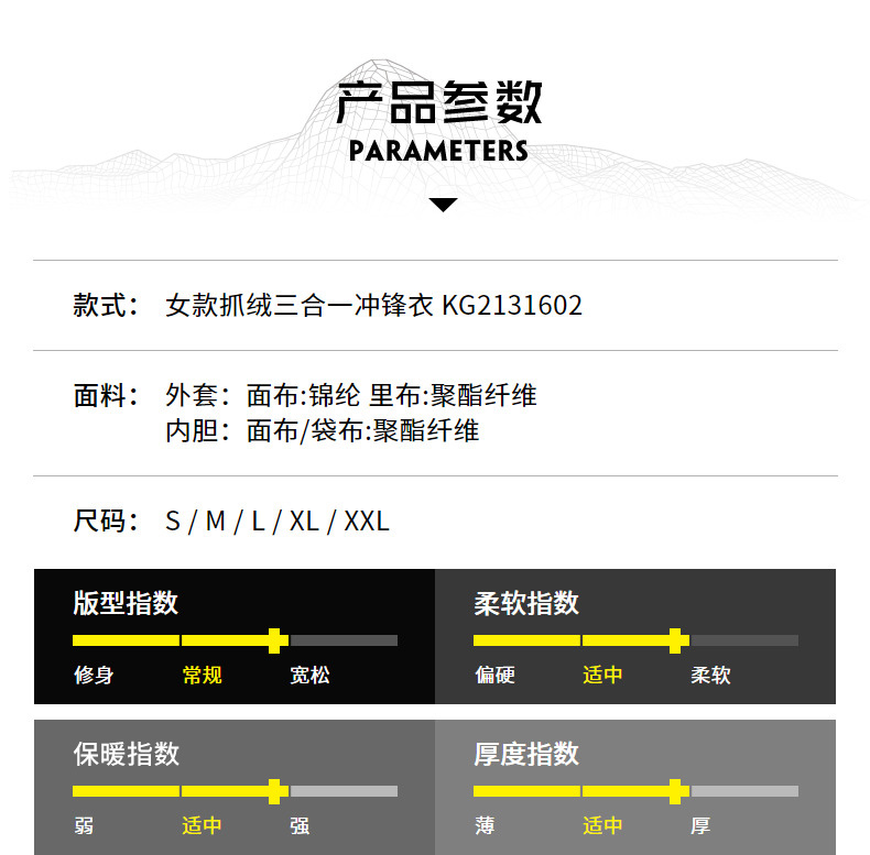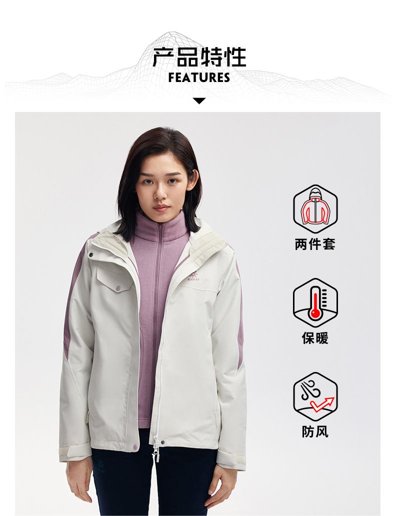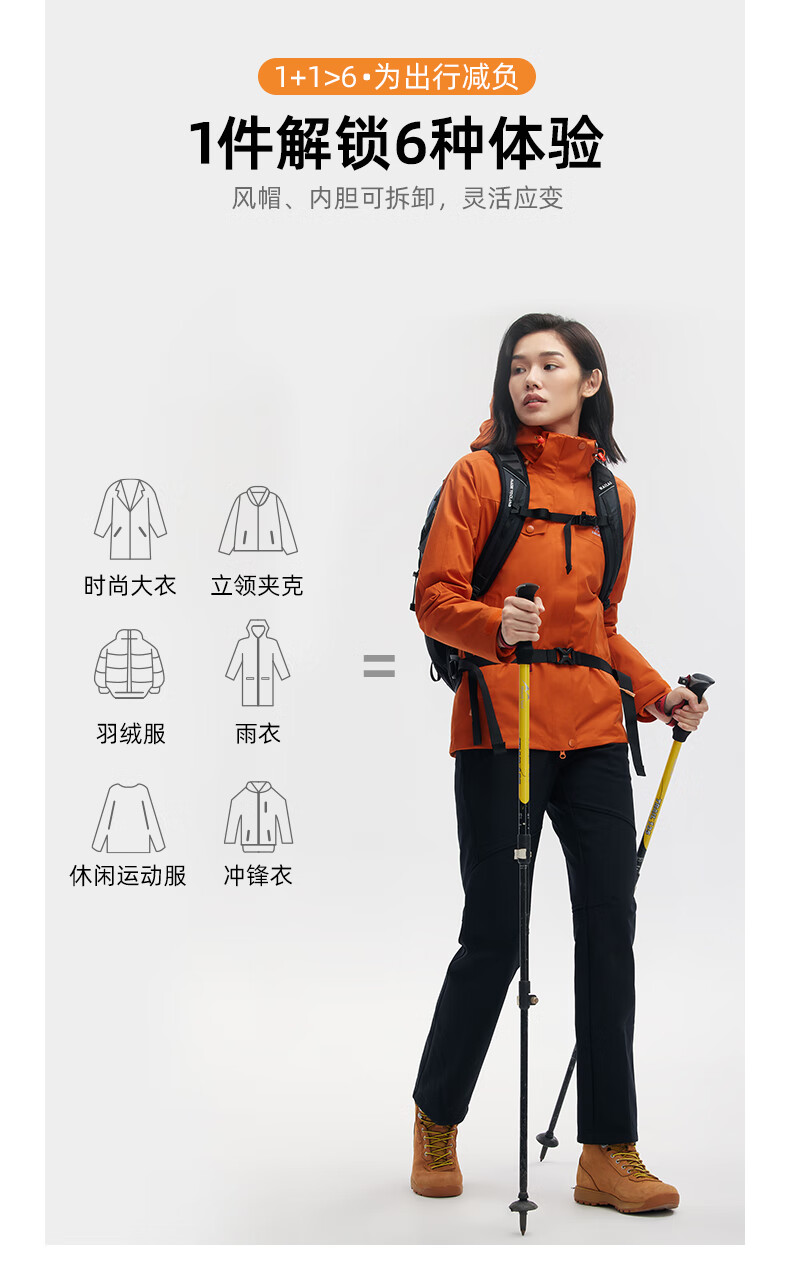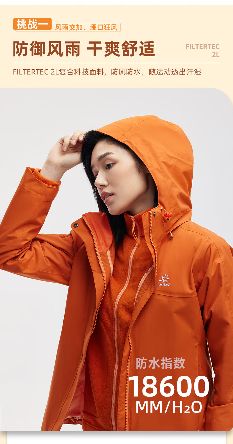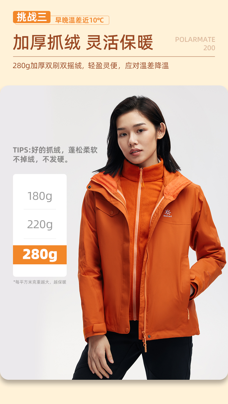商品名称:凯乐石 KAILAS户外运动女抓绒三合一(热能矩阵)KG2131602氧化橙 S码 单位:件