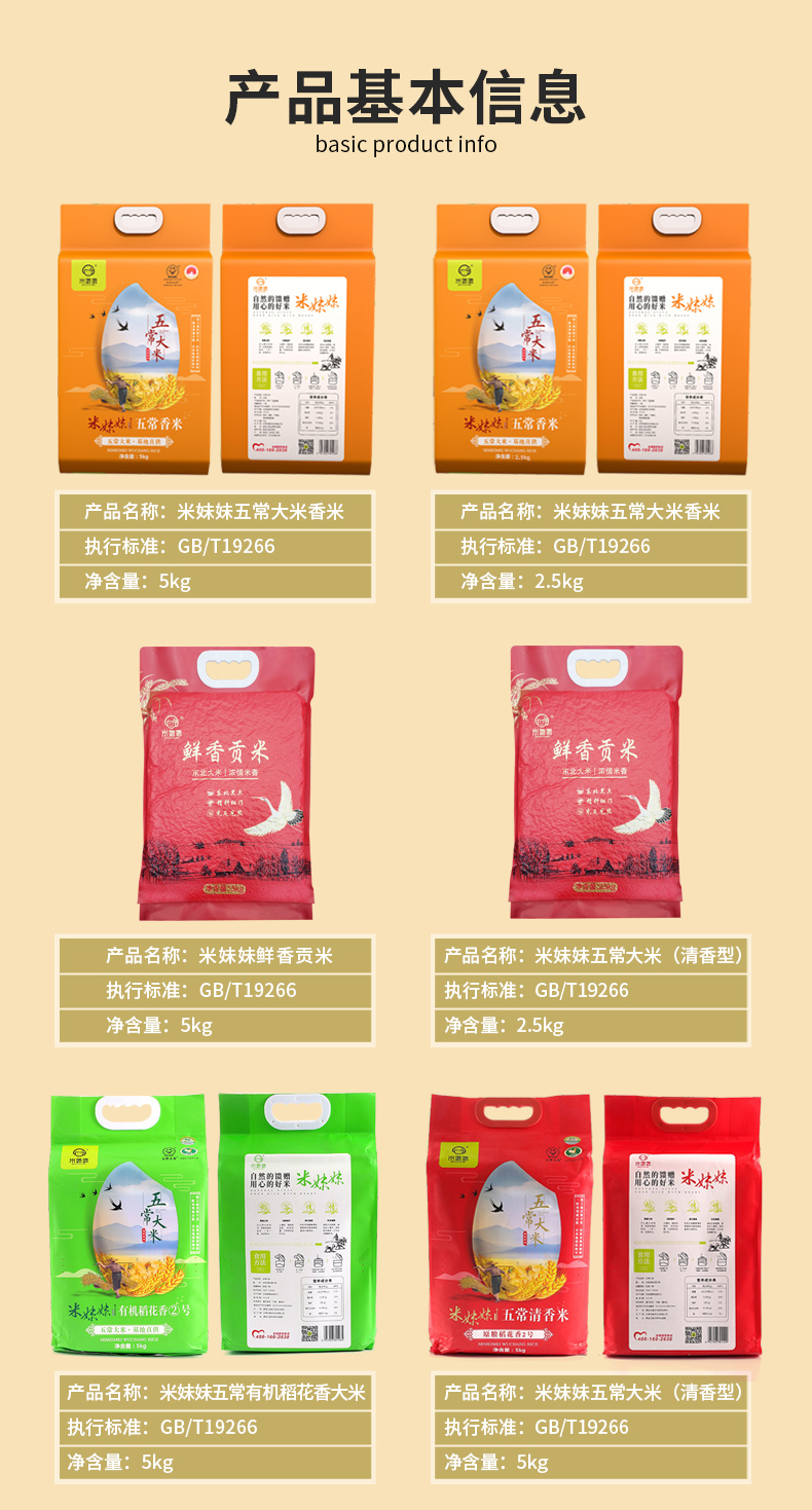 商品名称:米妹妹 五常香米(真空袋装)2.5kg 单位:袋