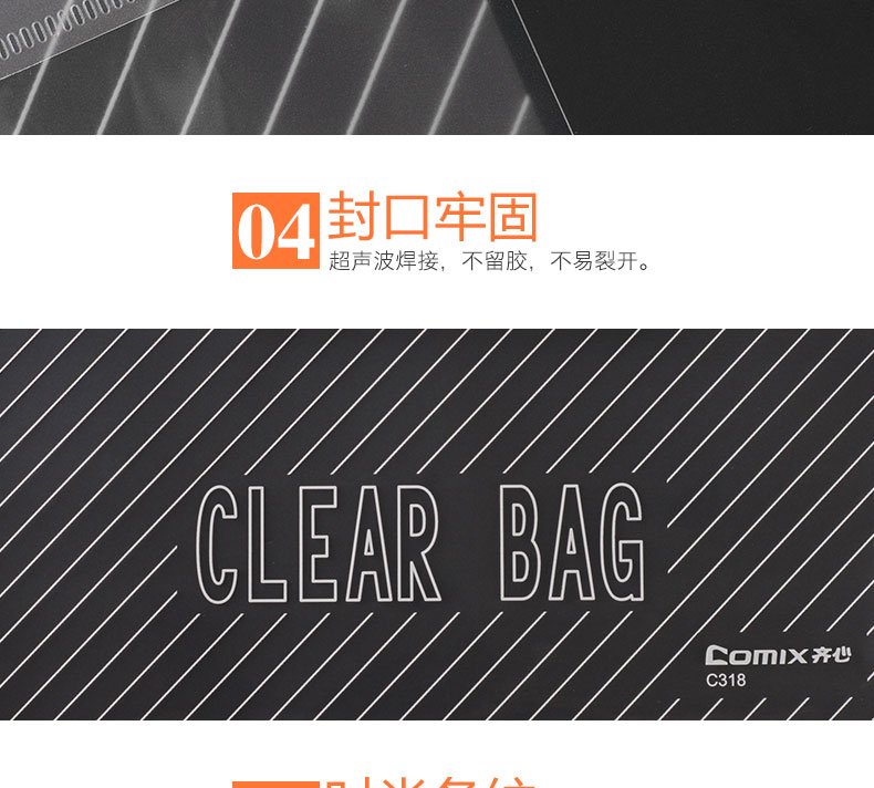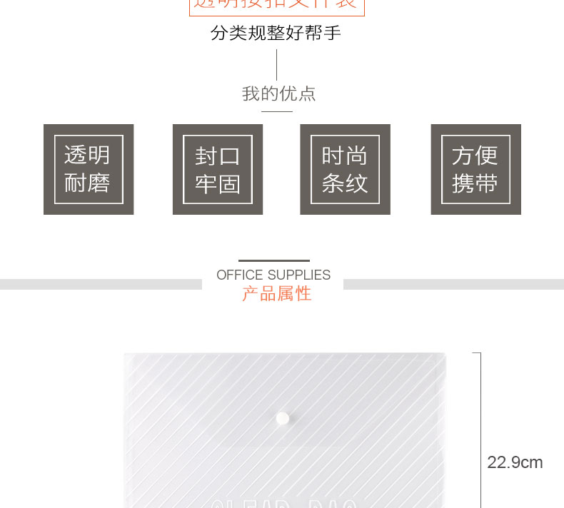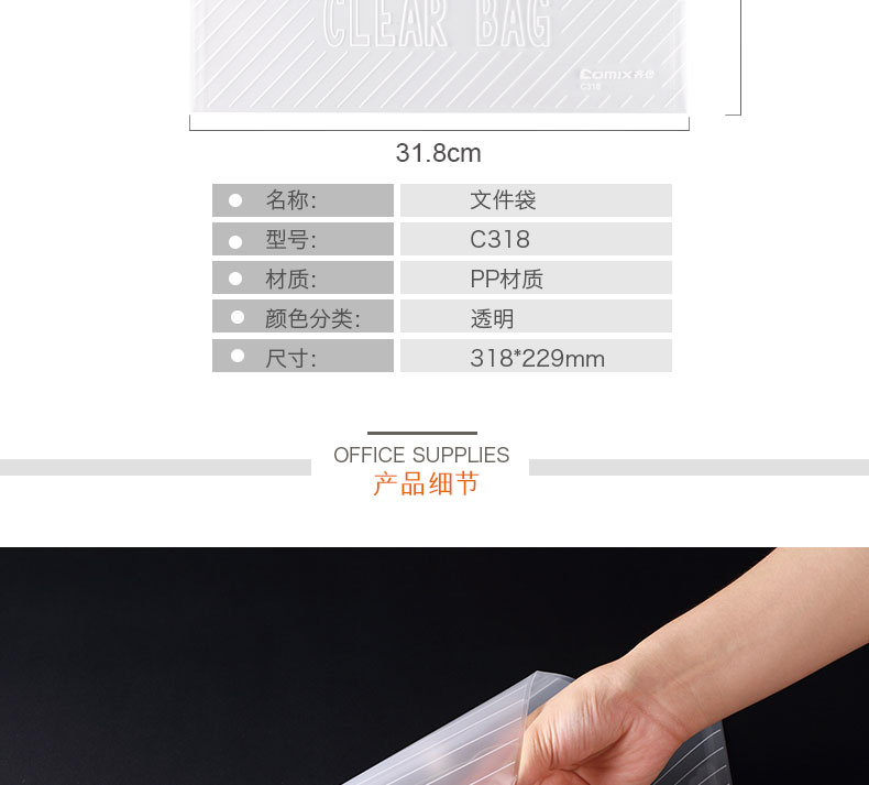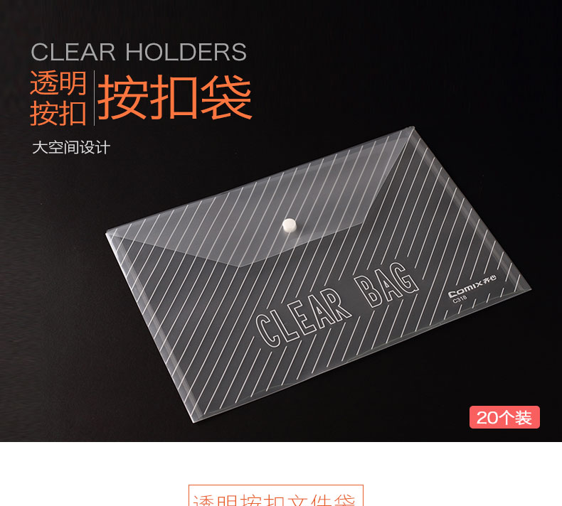 商品名称:齐心 c318 加厚透明按扣袋A4钮扣袋档案袋资料袋