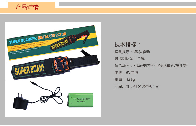 商品名称:丛林狐 丛林狐手持式金属探测器安检棒工厂车站金属探测仪检测棒安检仪扫描仪