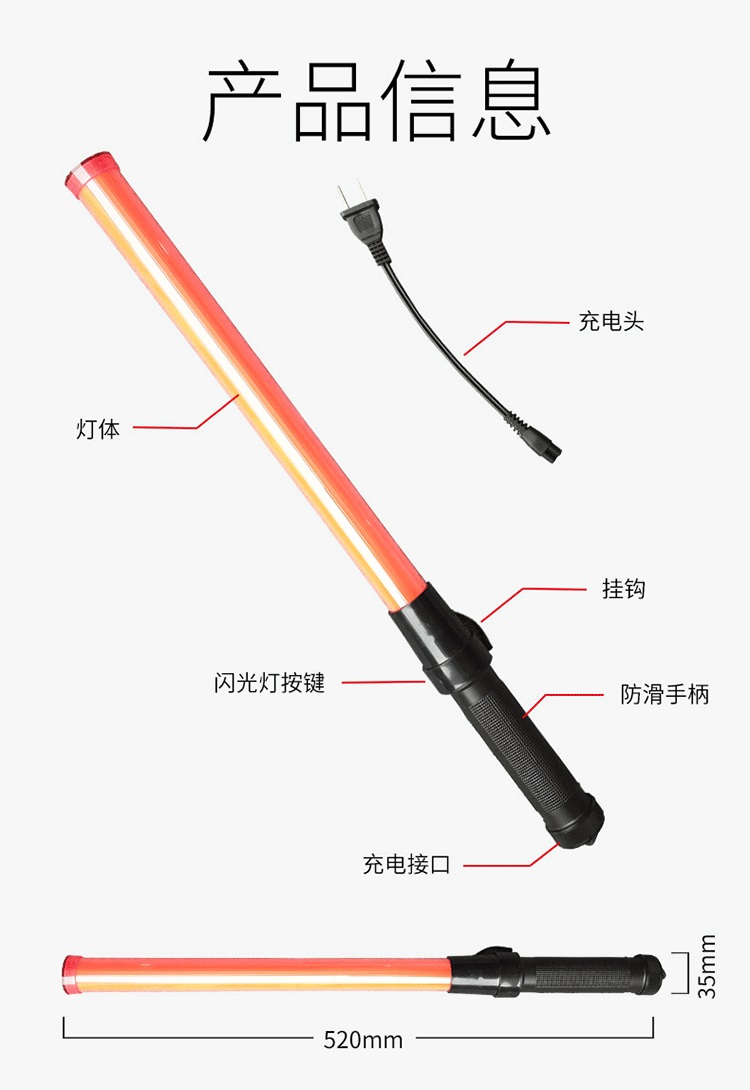 商品名称:丛林狐 交通安全指挥棒 全红色(充电款配充电器)道路警示指挥用应急荧光闪光LED灯消防棒 单位:个