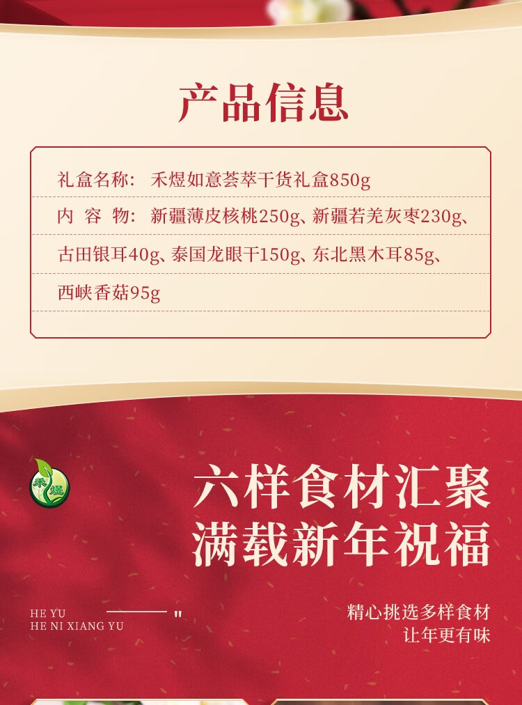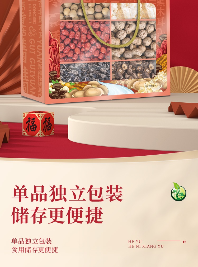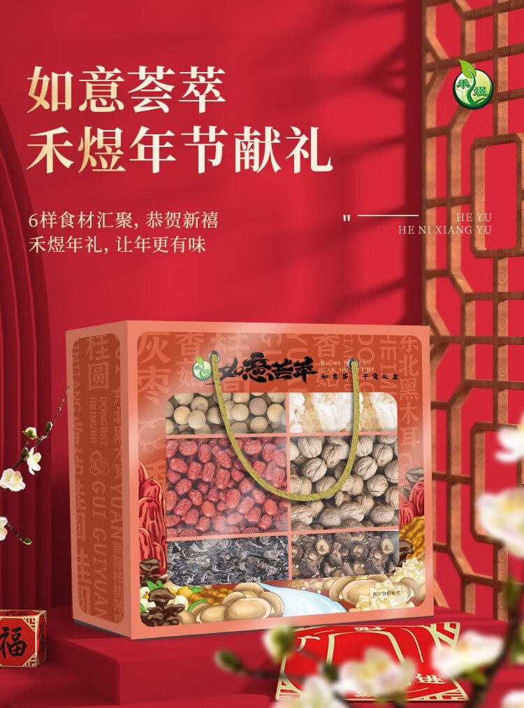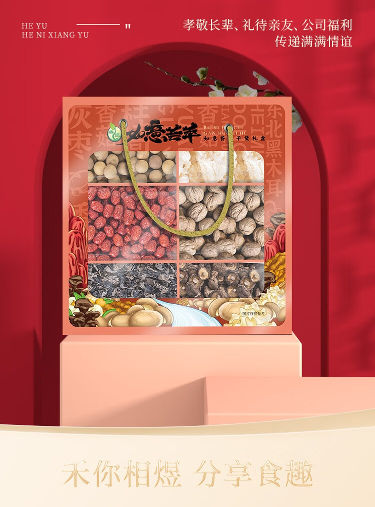 商品名称:禾煜 南北干货礼盒 菌菇特产礼盒香菇 木耳 五谷杂粮礼盒 如意荟萃850g