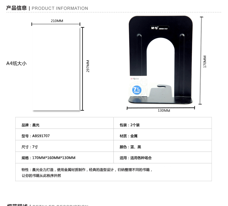 商品名称:晨光 书立 学习/办公用品 7寸书立 ABS91707 2只装