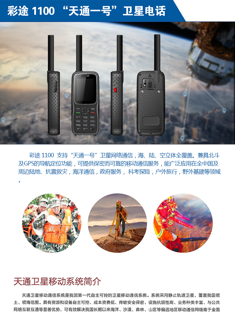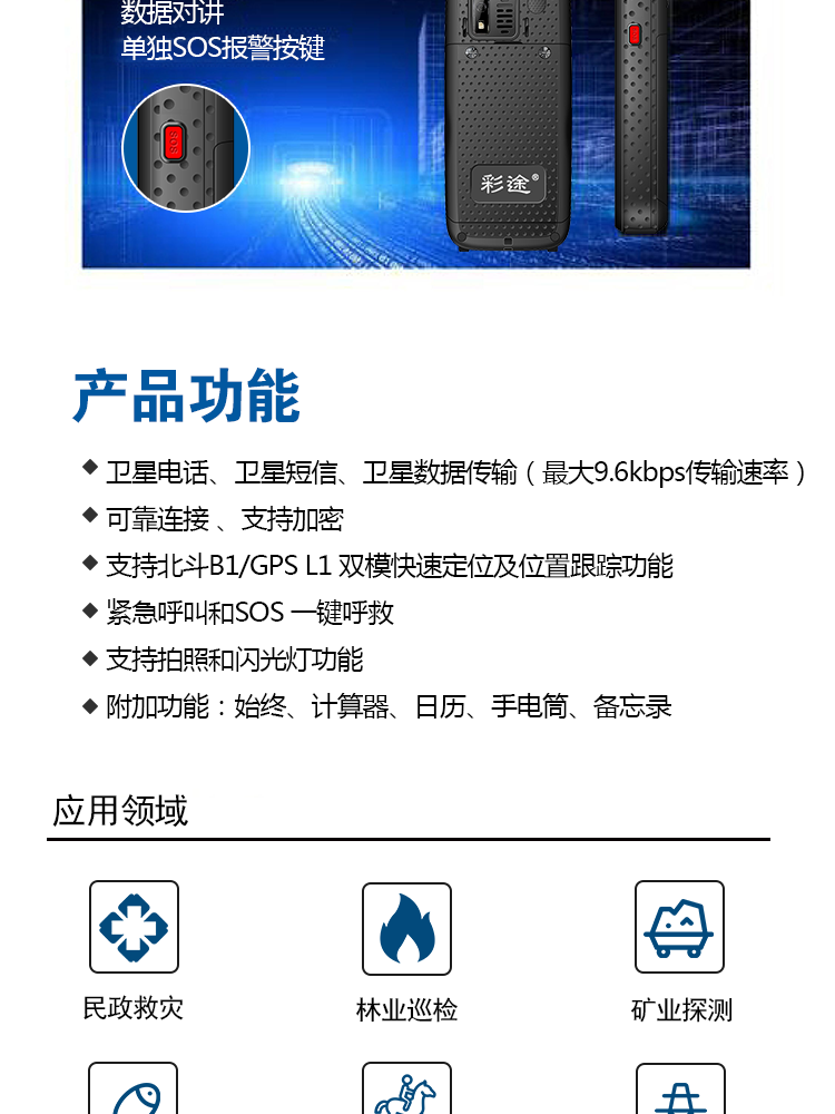 商品名称:彩途 卫星电话天通一号手持北斗GPS定位短信数据传输位置跟踪野外应急抗震救灾