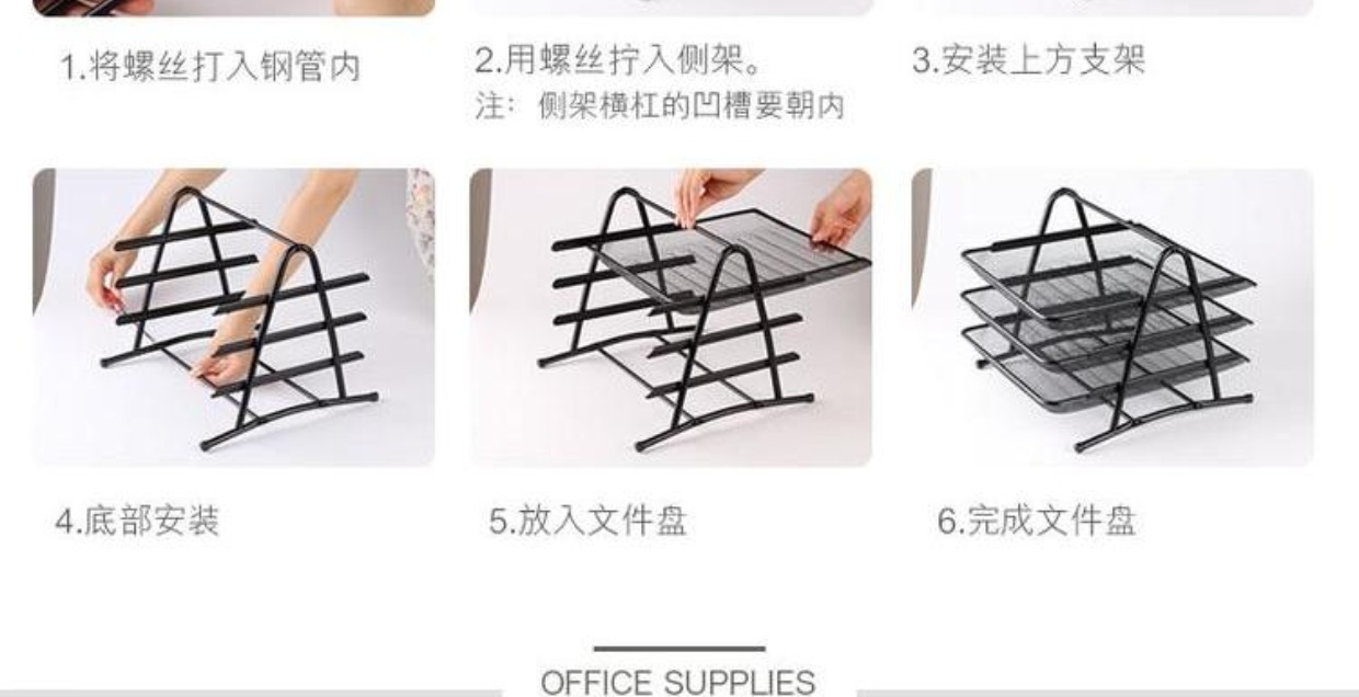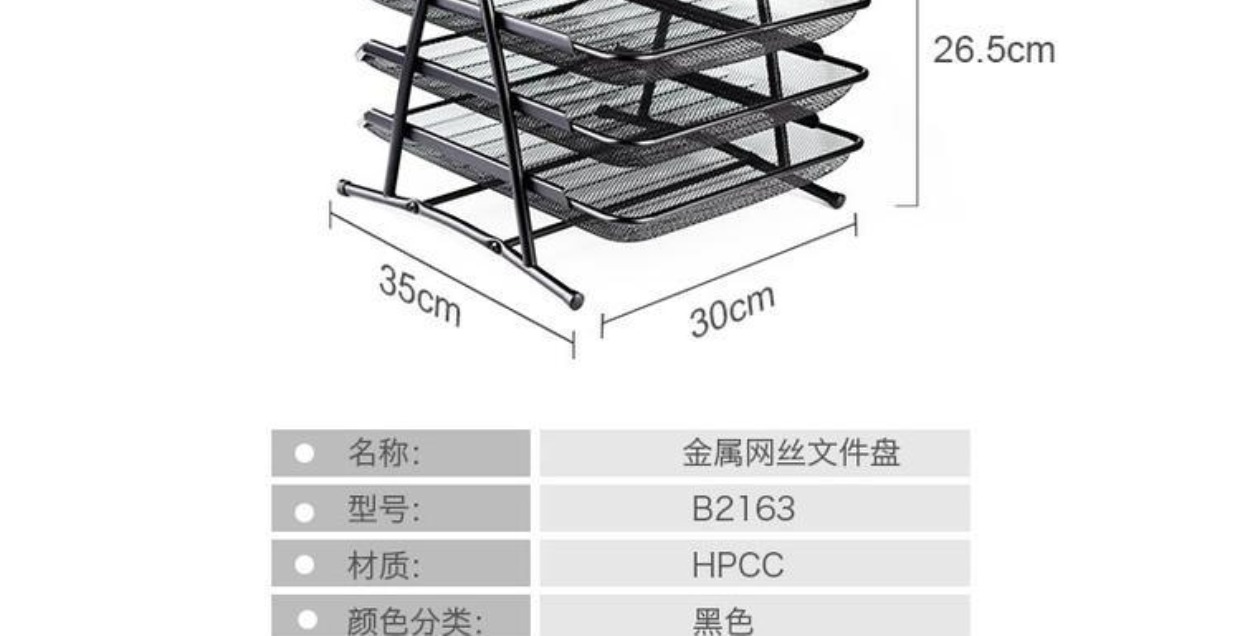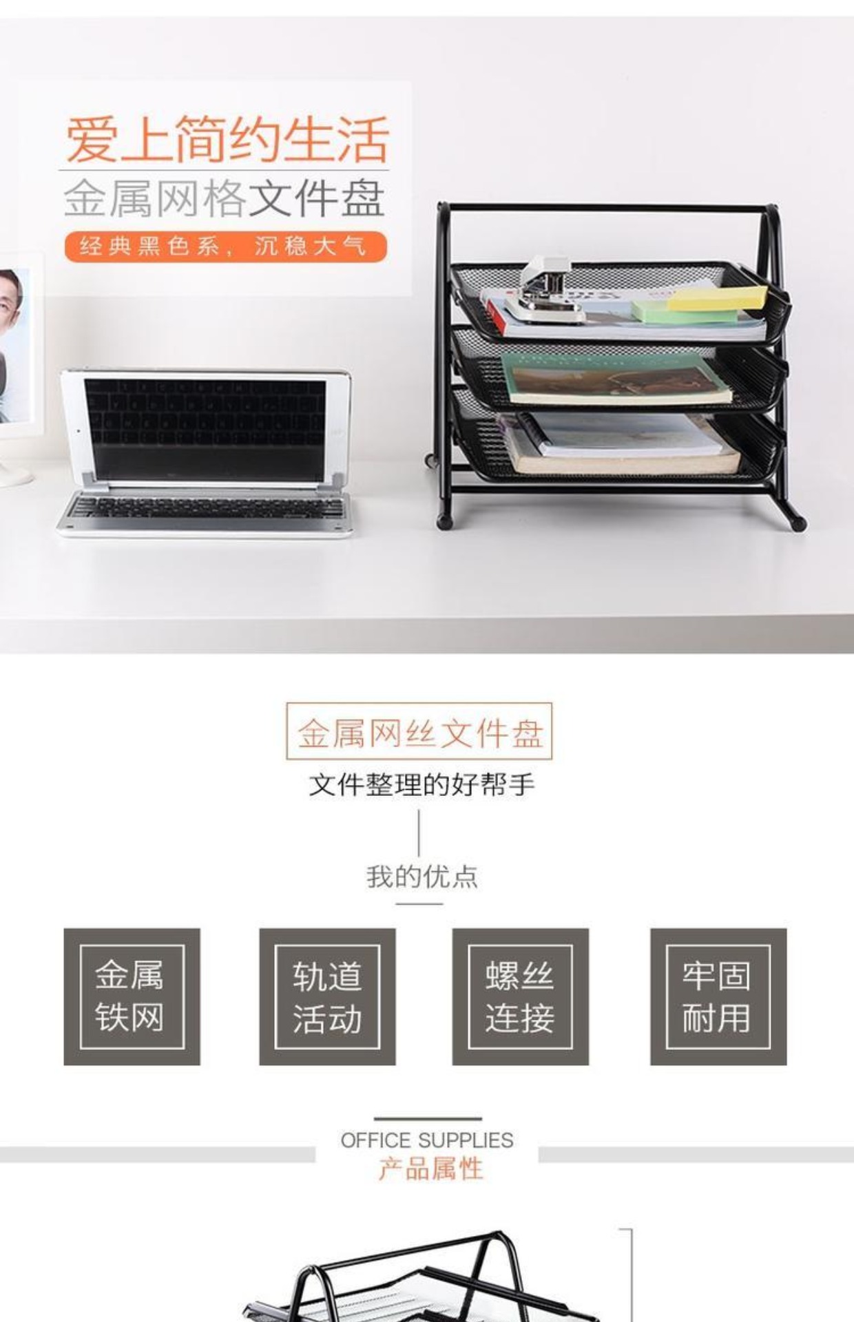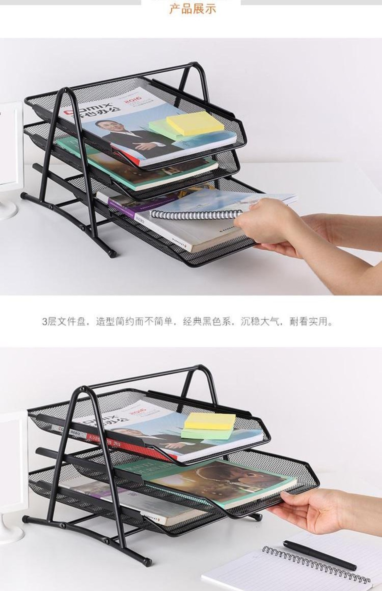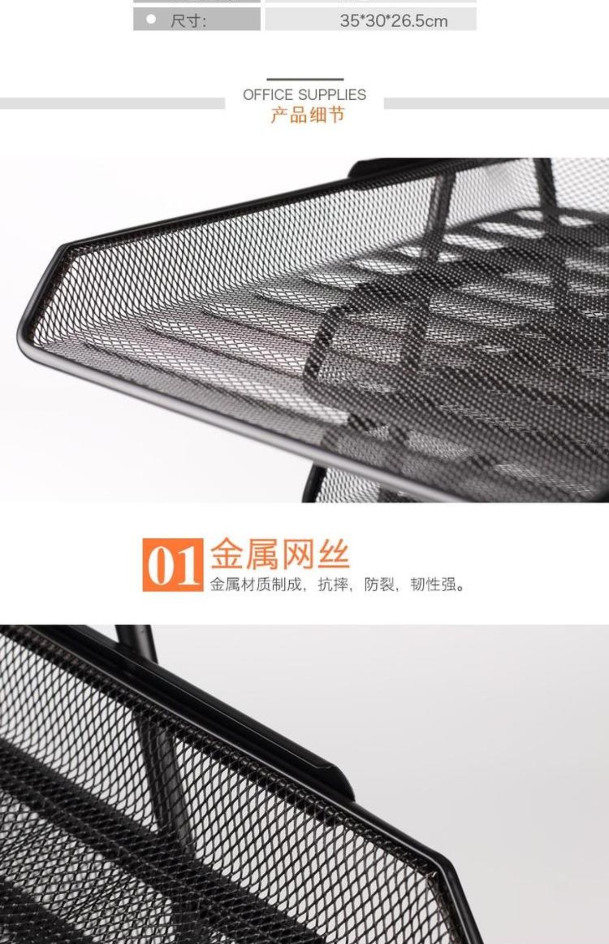 商品名称:齐心 金属网格三层文件盘文件收纳架资料架文件栏黑色B2163文件架