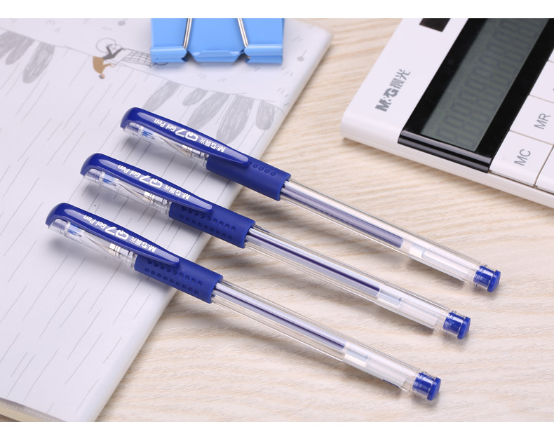 商品名称:晨光(M&G) 48支0.5mm蓝色中性笔 子弹头签字笔 拔盖碳素笔 办公用水笔Q7B 3盒起订