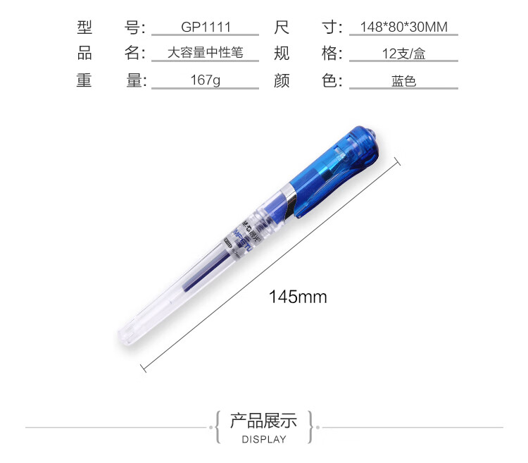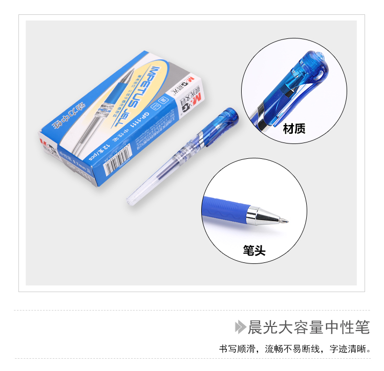 商品名称:晨光(M&G)GP1111天空5号中性笔 大容量子弹头签字笔0.7mm 办公学习用水性笔 蓝色 12支装/盒 5盒起订