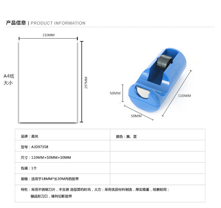 商品名称:晨光 胶带座透明胶条胶布切胶带割器文具胶纸座胶带黑蓝蓝色切割器胶条座胶带辅助器一个装