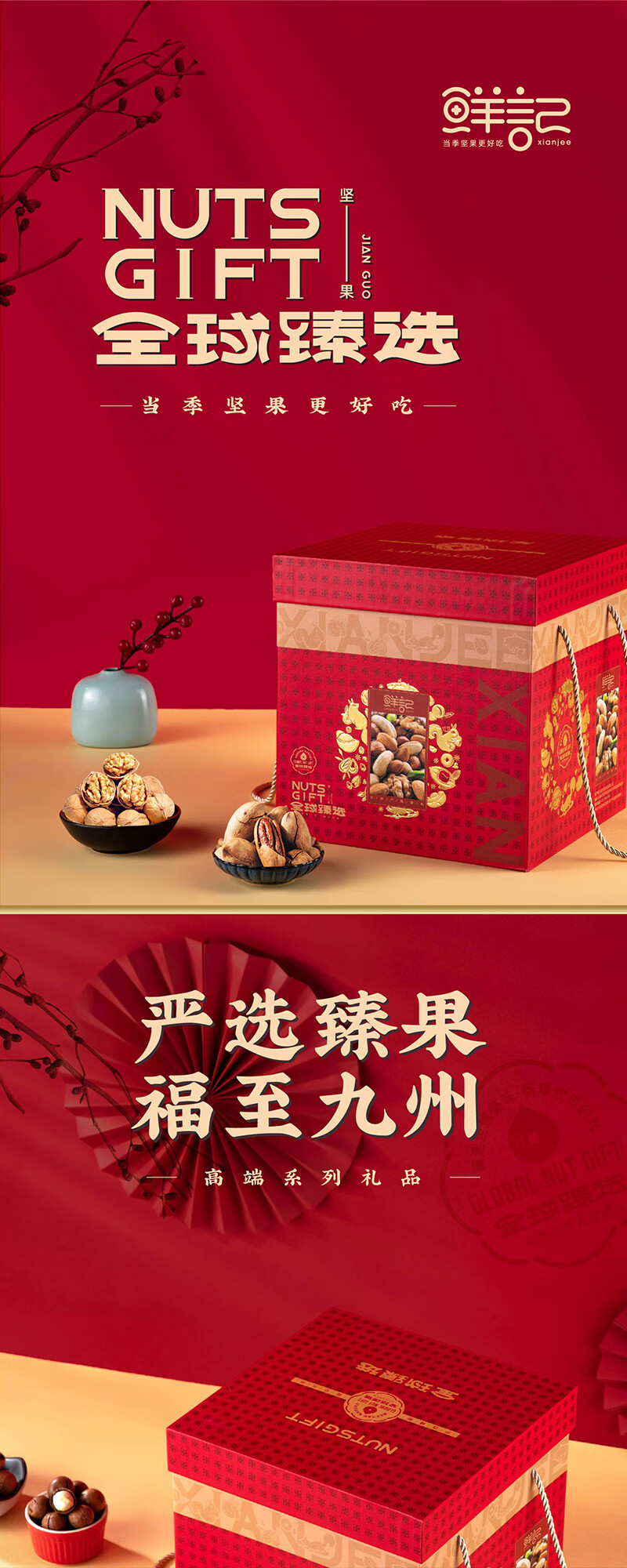 商品名称:鲜记 全球臻选礼盒1.88kg 休闲零食 团购佳品 送礼大礼包 坚果零食 单位:盒