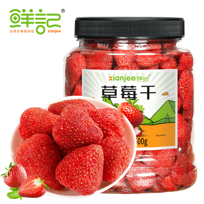 商品名称:鲜记 草莓干500g/罐 蜜饯果干特产果脯 水果干办公室休闲零食儿童零食 单位:罐 3罐起订