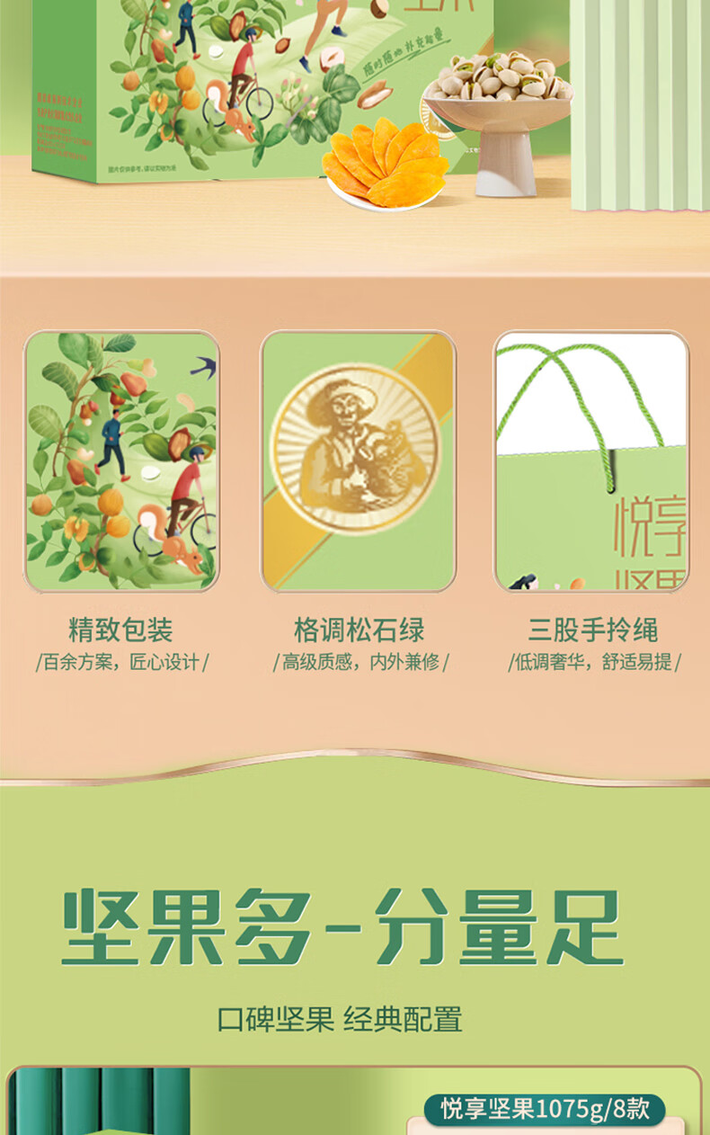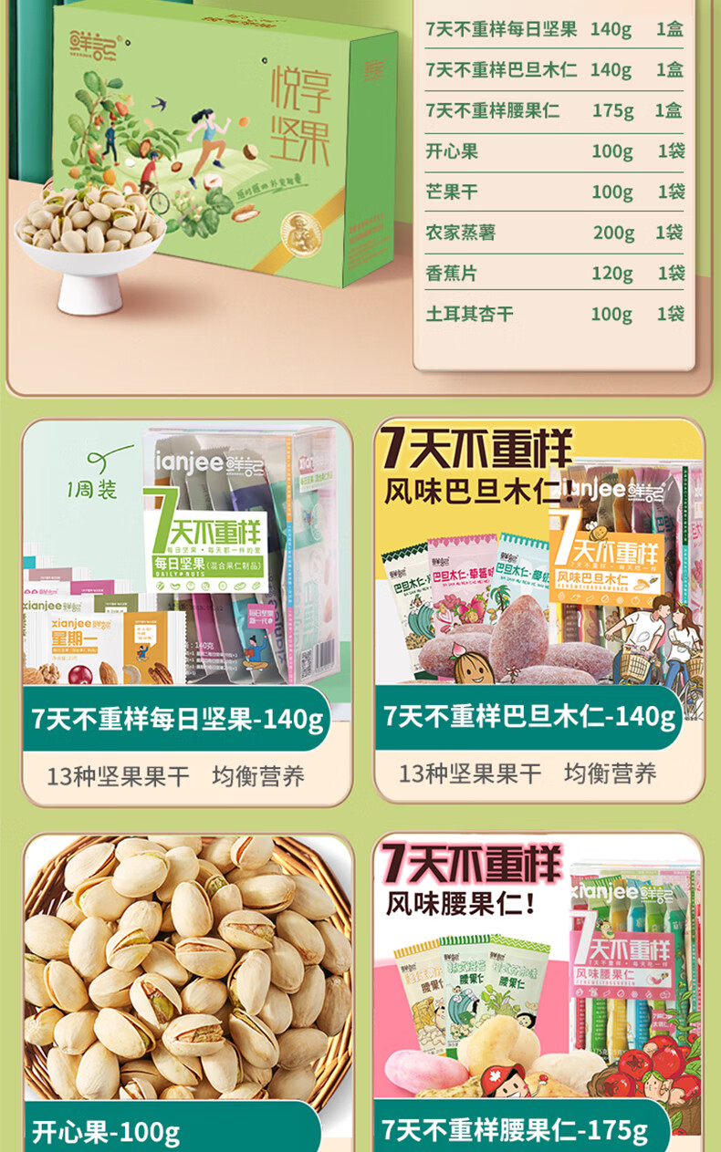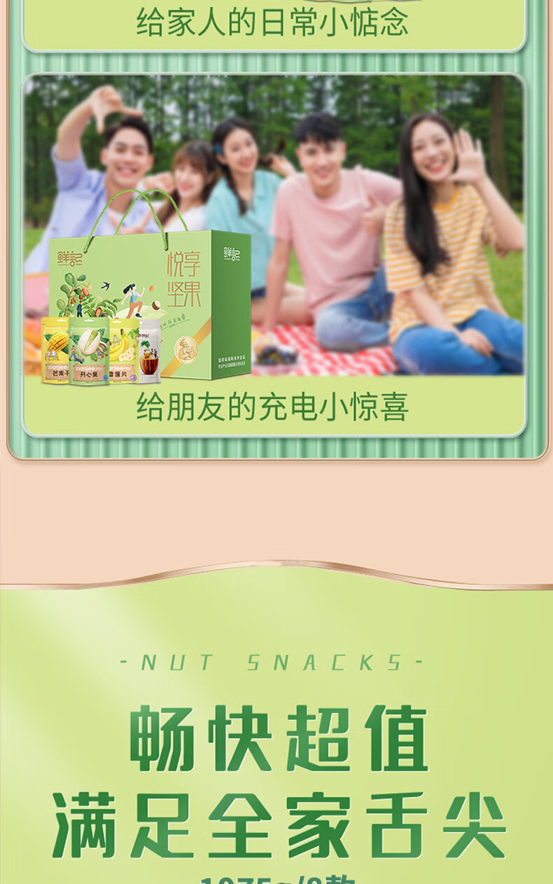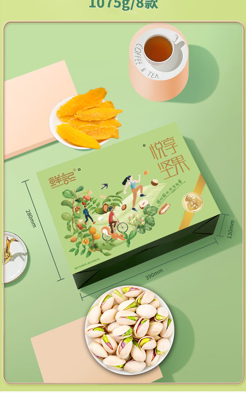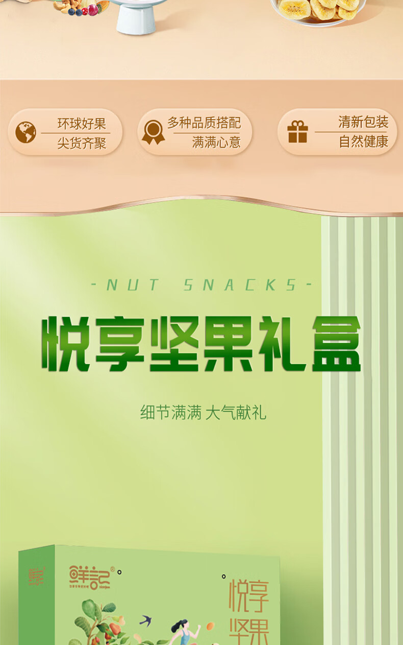 商品名称:鲜记 悦享坚果1.075kg 休闲食品坚果果干混装组合大礼包 单位:盒