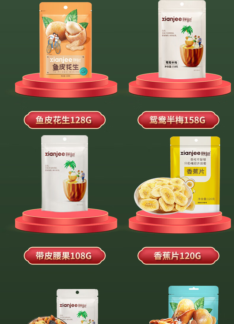 商品名称:鲜记 坚果礼享礼盒1.176kg 休闲坚果零食 单位:盒