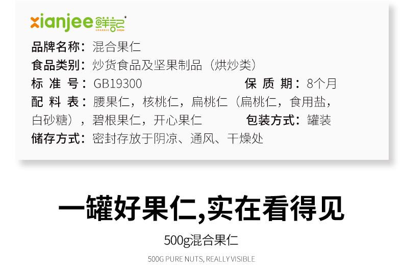 商品名称:鲜记 混合果仁348g/罐 坚果果仁