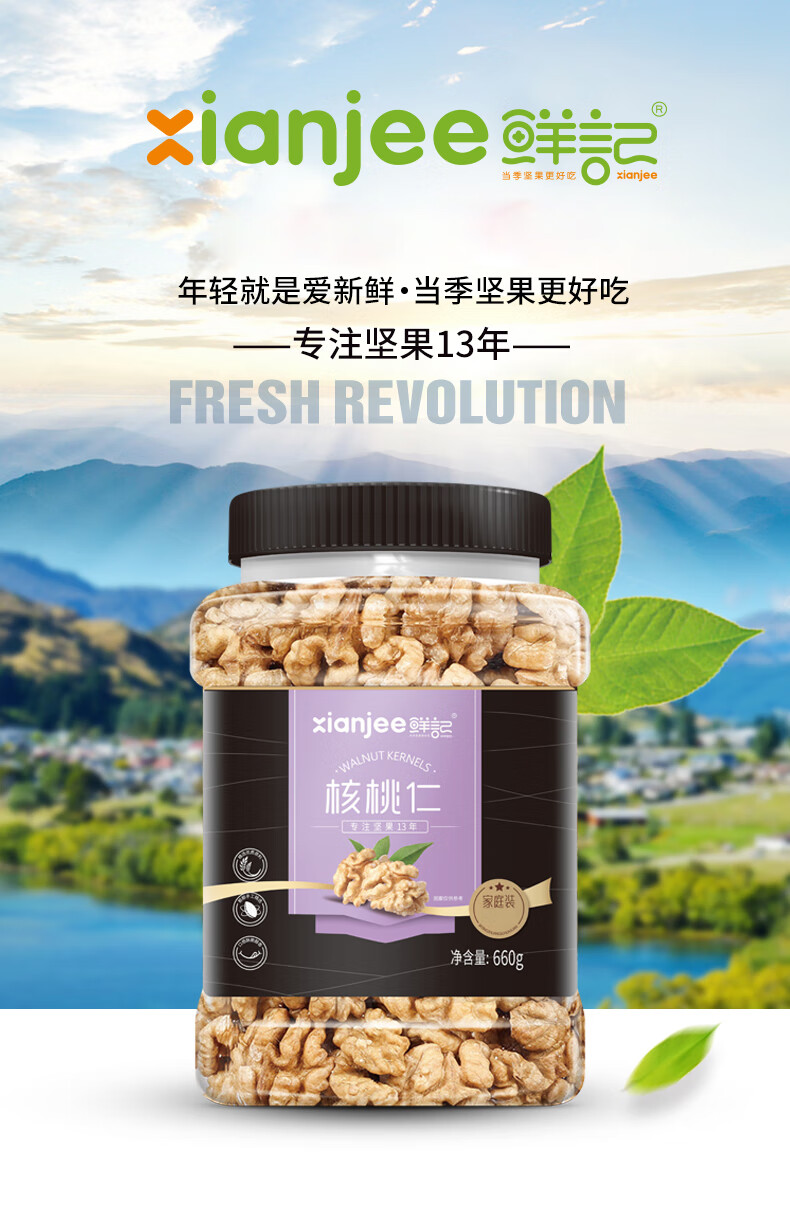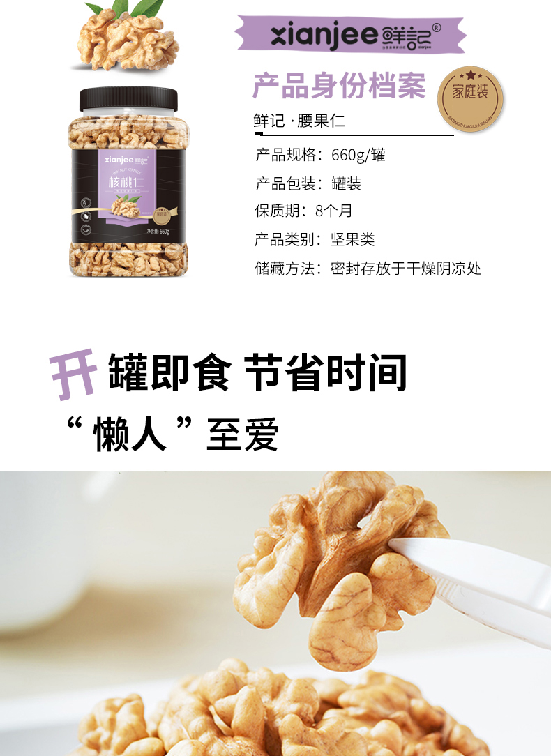 商品名称:鲜记 核桃仁660g罐装 原味即食纸薄皮大核桃