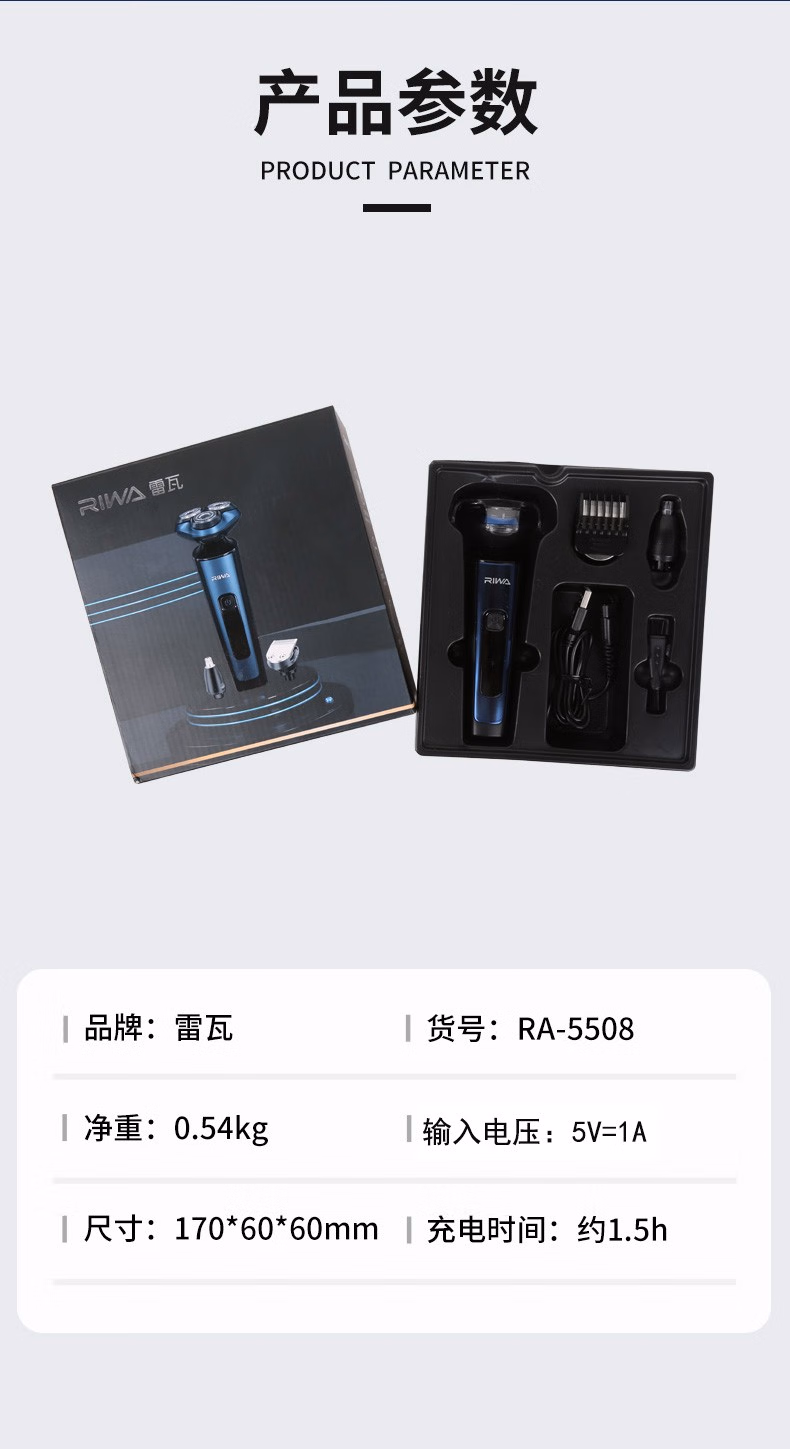 商品名称:雷瓦(RIWA) 电动剃须刀充电便携刮胡刀 浅蓝色 单位:台