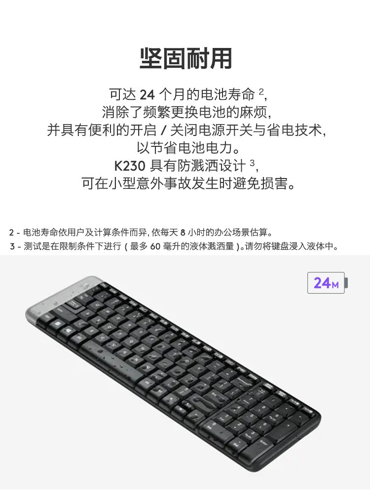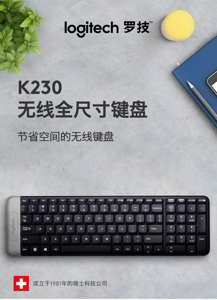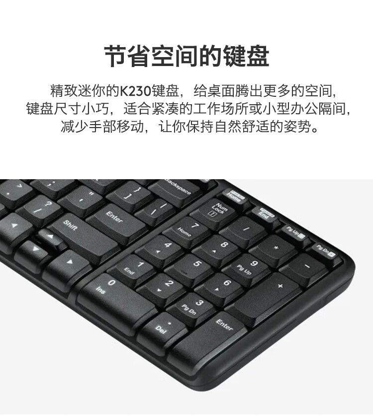 罗技(Logitech)K230 键盘 无线键盘 办公键盘 优联 笔记本键盘 黑色 自营 带无线2.4G接收器