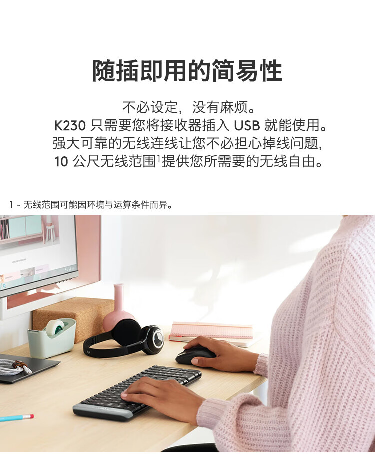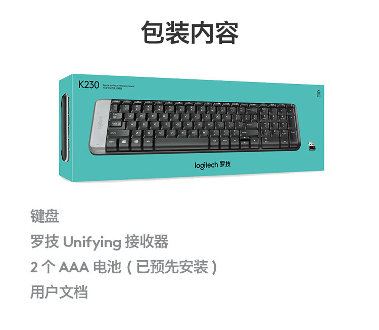 商品名称:罗技(Logitech)K230 键盘 无线键盘 办公键盘 优联 笔记本键盘 黑色 自营 带无线2.4G接收器