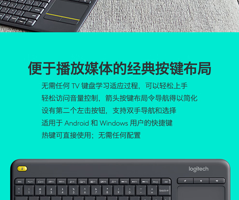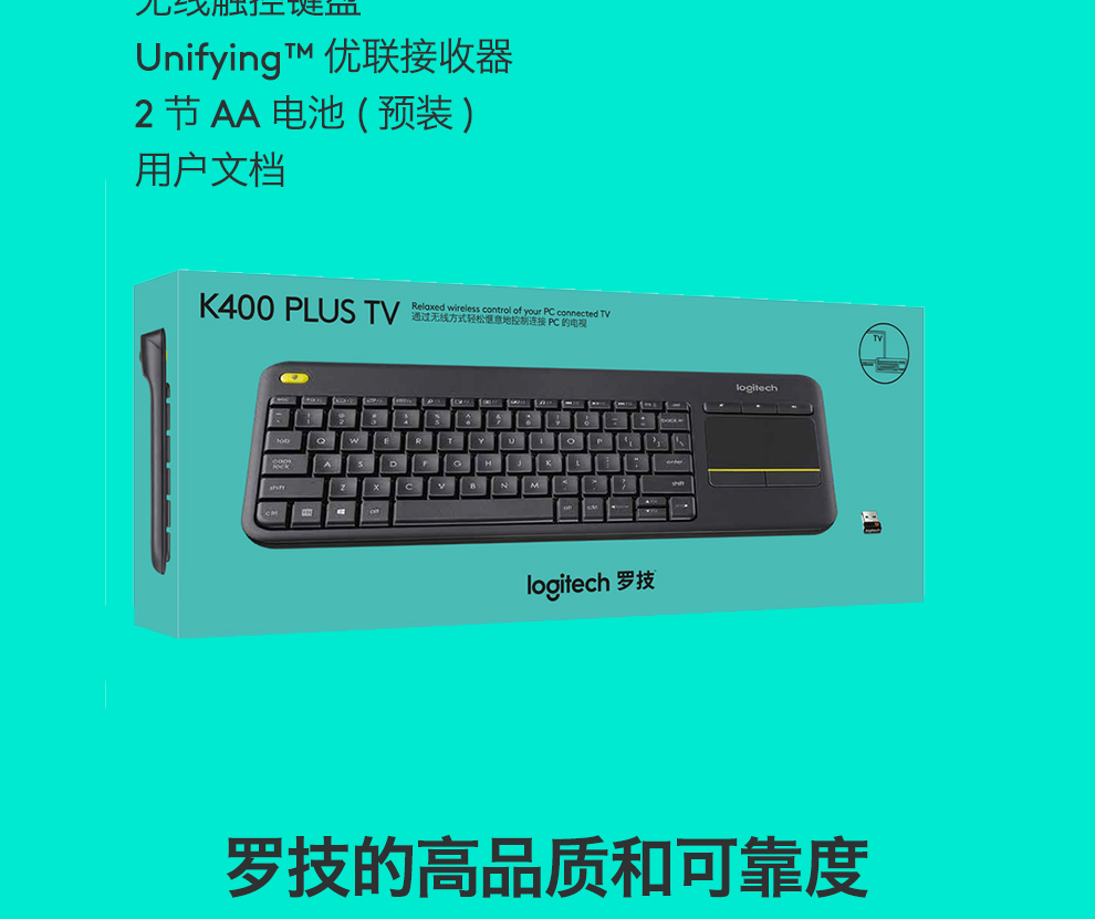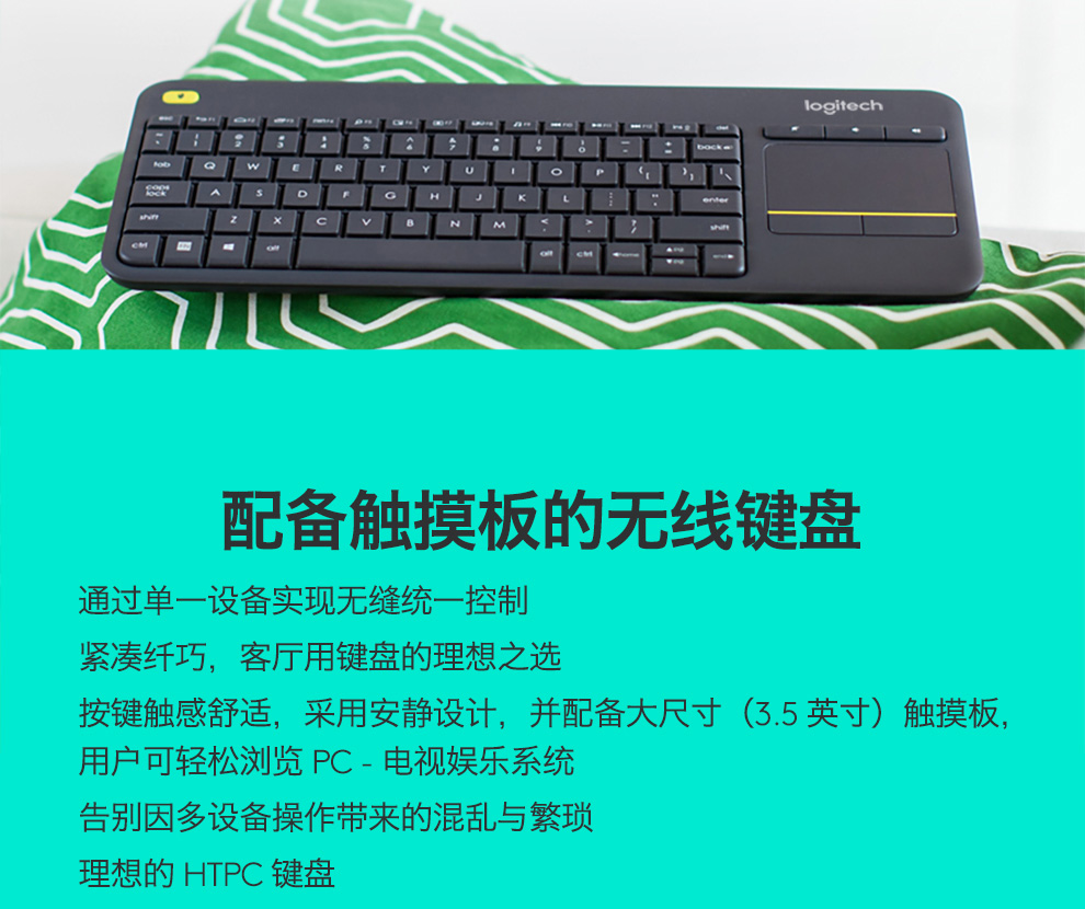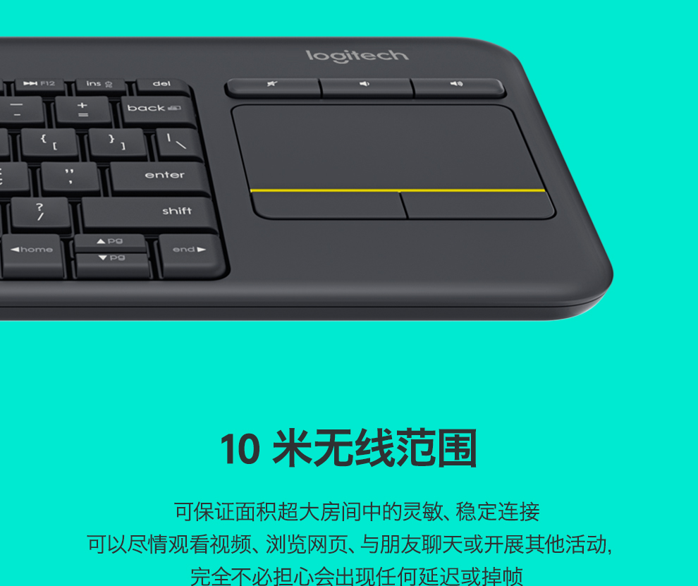 商品名称:罗技(Logitech)K400Plus安卓智能电视电脑笔记本触摸面板无线触控键盘 黑色