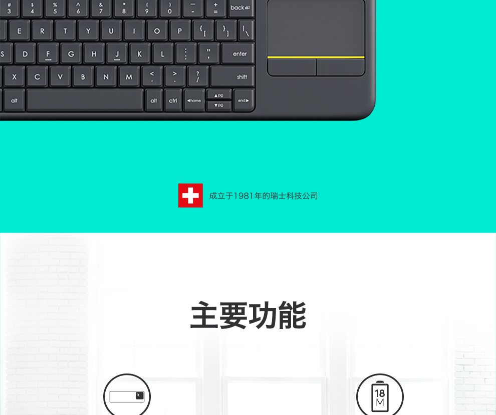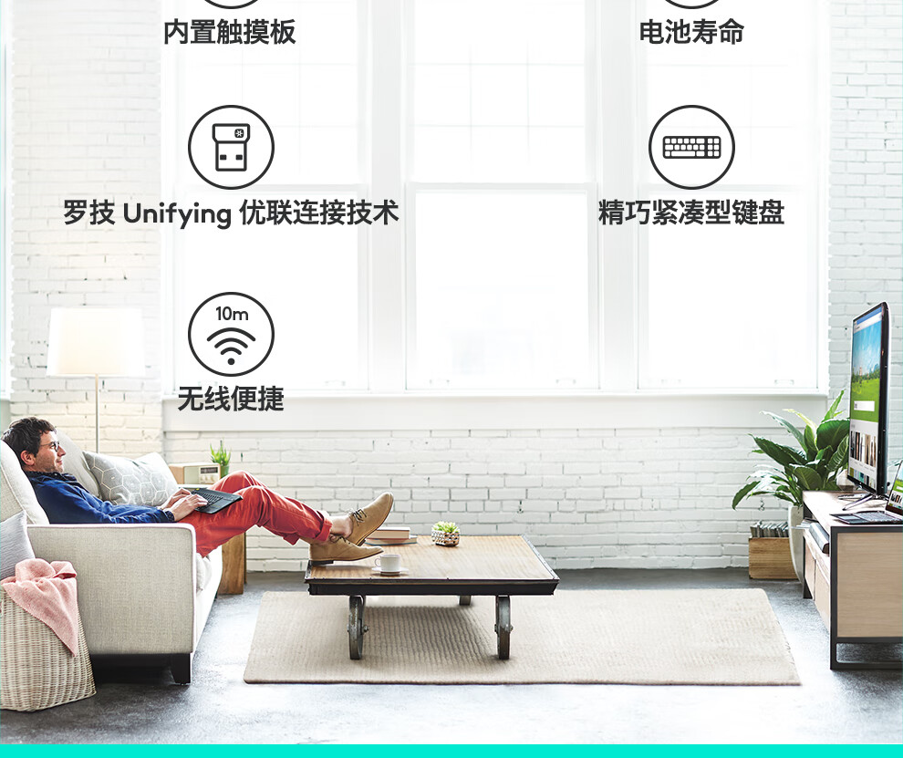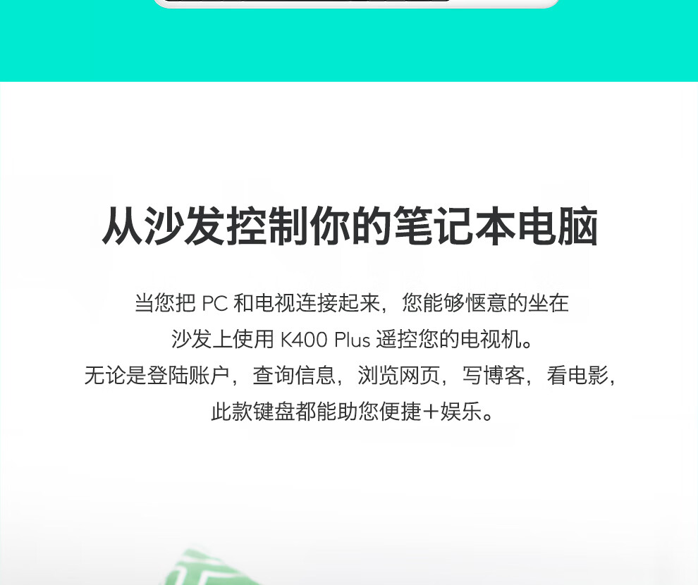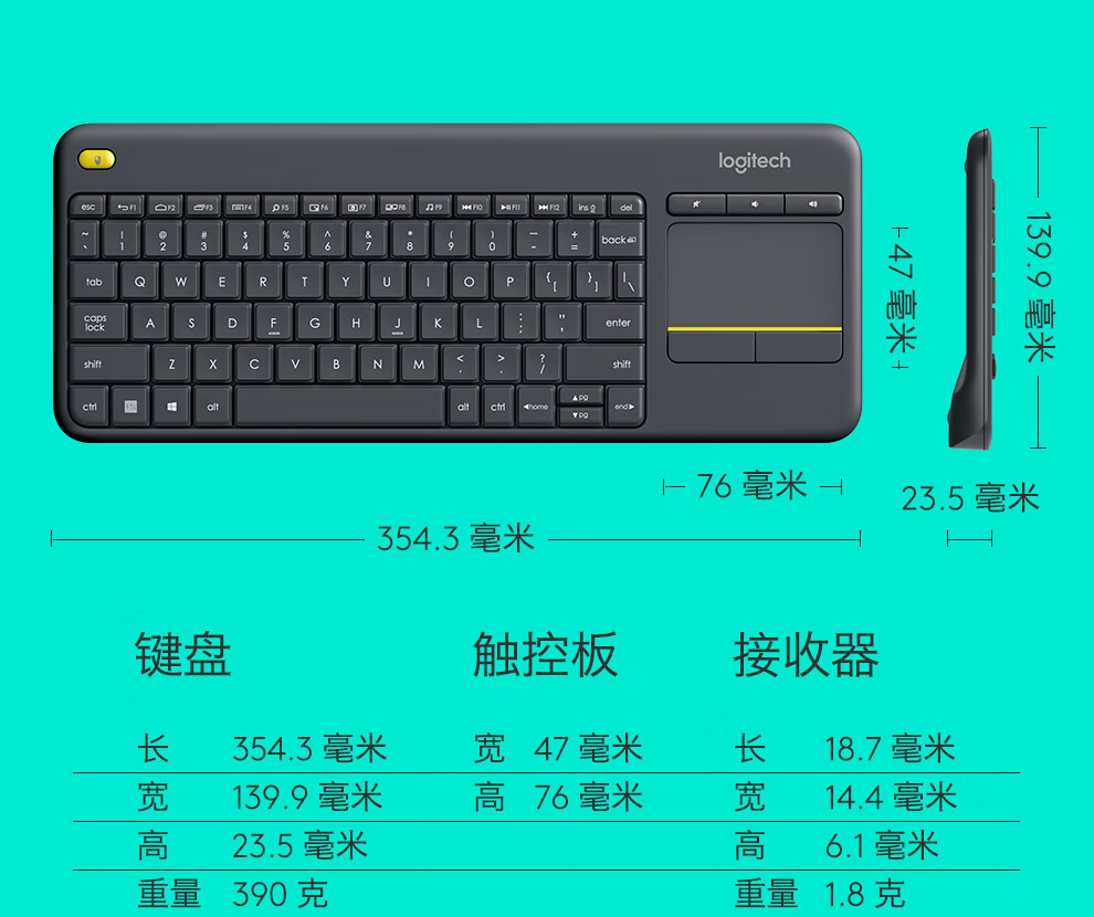 商品名称:罗技(Logitech)K400Plus安卓智能电视电脑笔记本触摸面板无线触控键盘 黑色