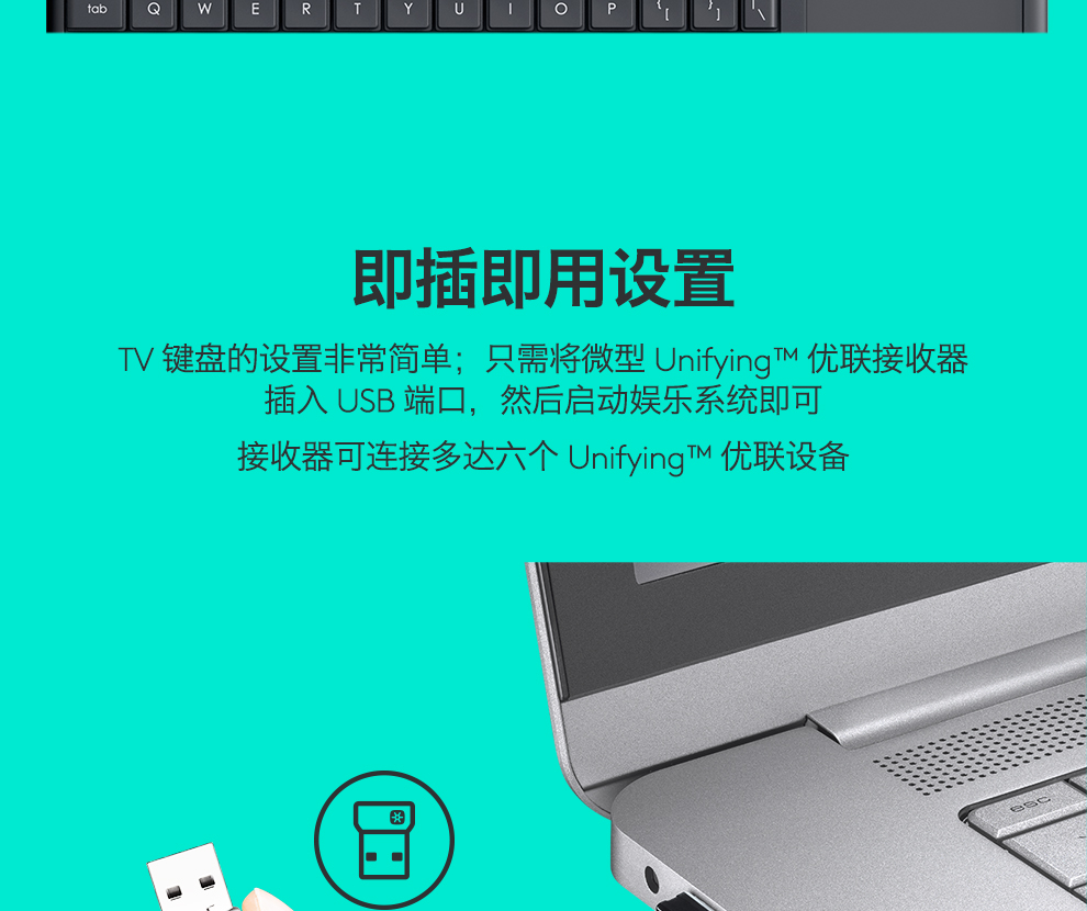 罗技(Logitech)K400Plus安卓智能电视电脑笔记本触摸面板无线触控键盘 黑色