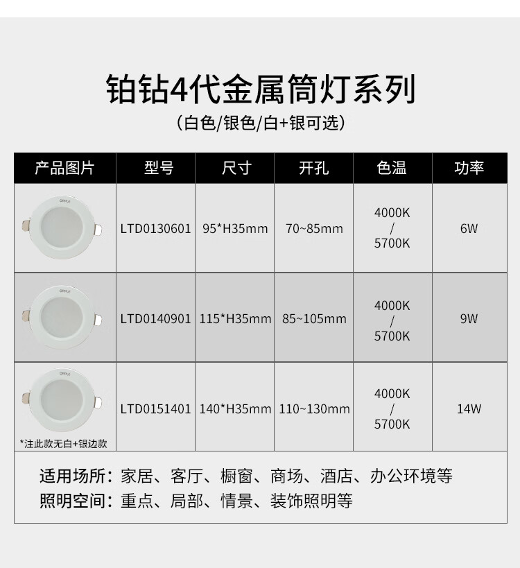 商品名称:欧普照明(OPPLE) 筒灯-9W-5700K-4寸-金属银
