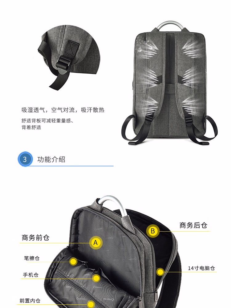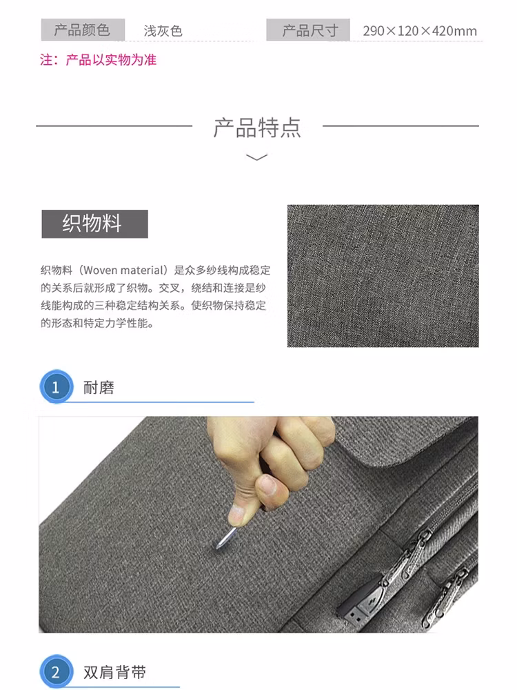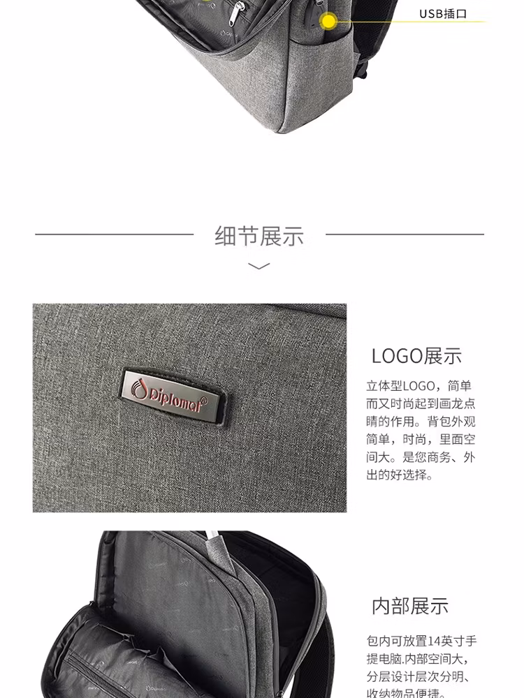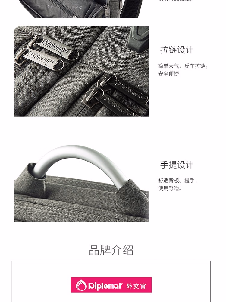 商品名称:外交官 双肩包 HM-1560L 浅灰色