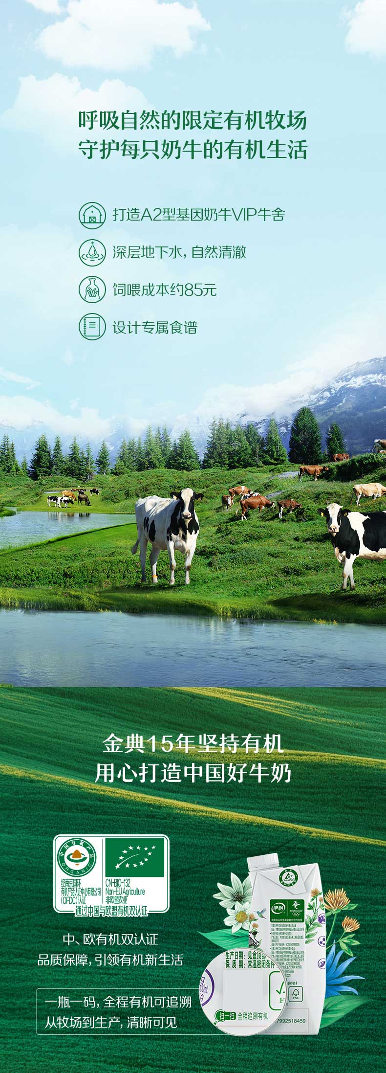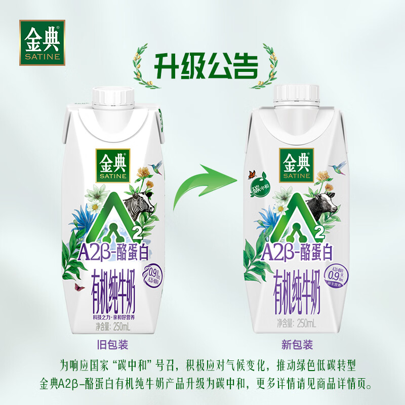 商品名称:伊利 金典A2β-酪蛋白有机纯牛奶250ml*10盒/箱(礼盒装)中欧有机认证 甄选A2型奶牛 亲和好营养