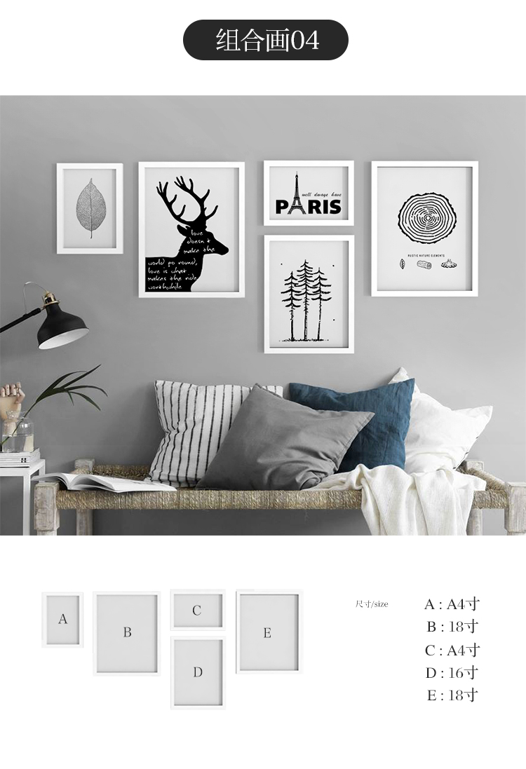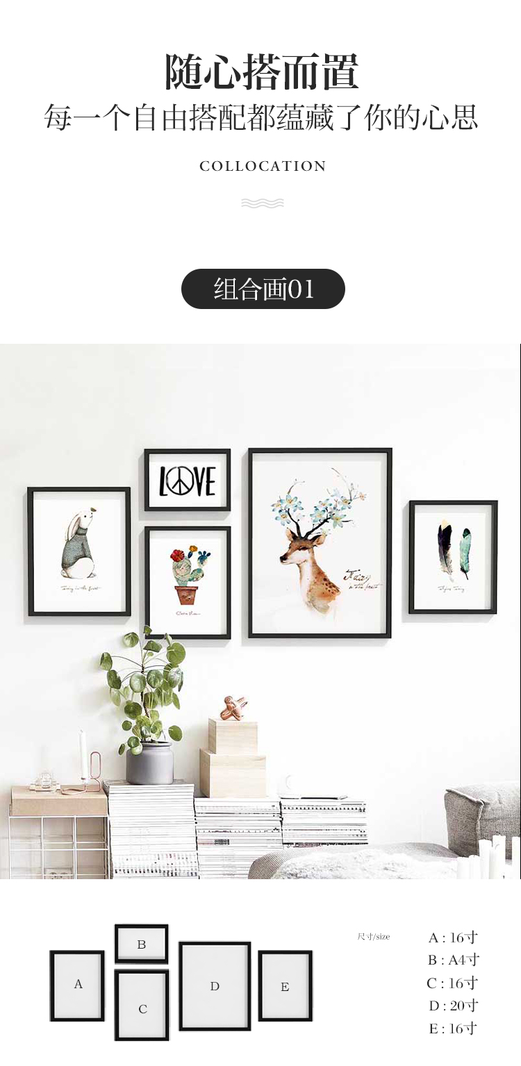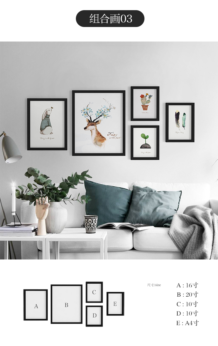 商品名称:朗格 北欧客厅沙发背景装饰画卧室壁画电表箱挂画组合餐厅墙画