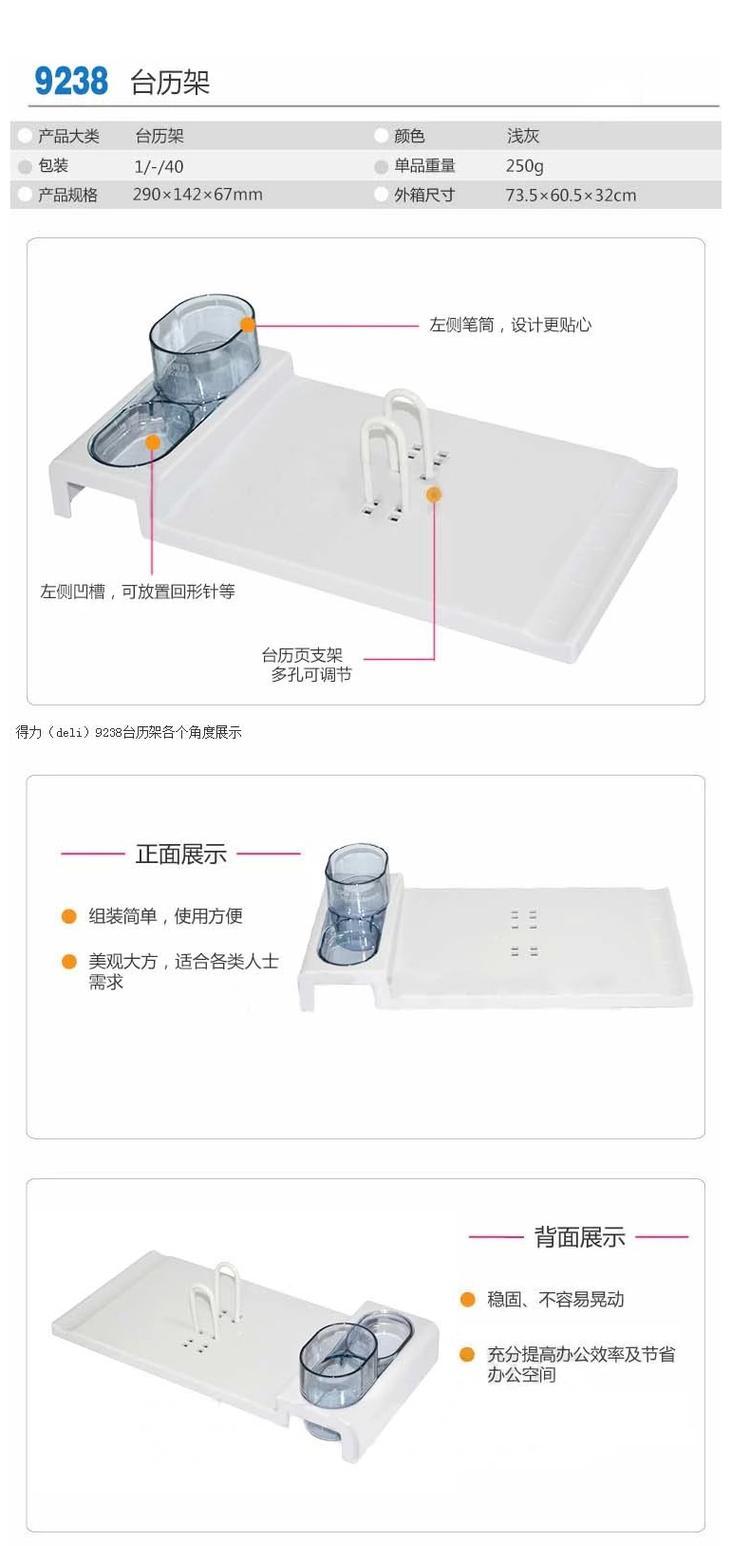 商品名称:得力 台历架日历架9238多功能笔筒台历架 年历架 桌面台历架