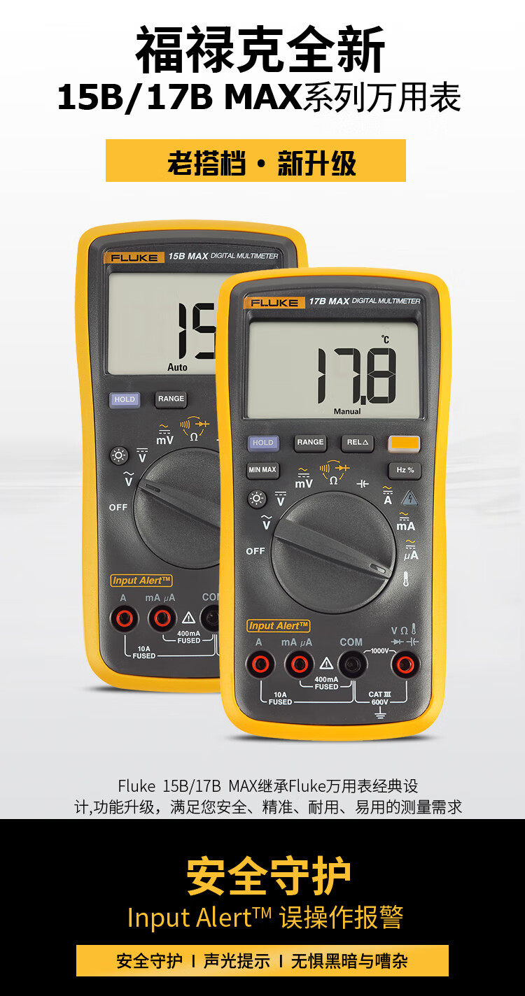 商品名称:福禄克(FLUKE)17B MAX数字万用表 高精度智能电工表万能表 多用表 FLK-17B MAX KIT/CN