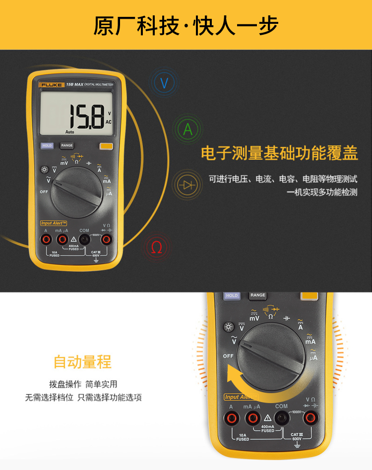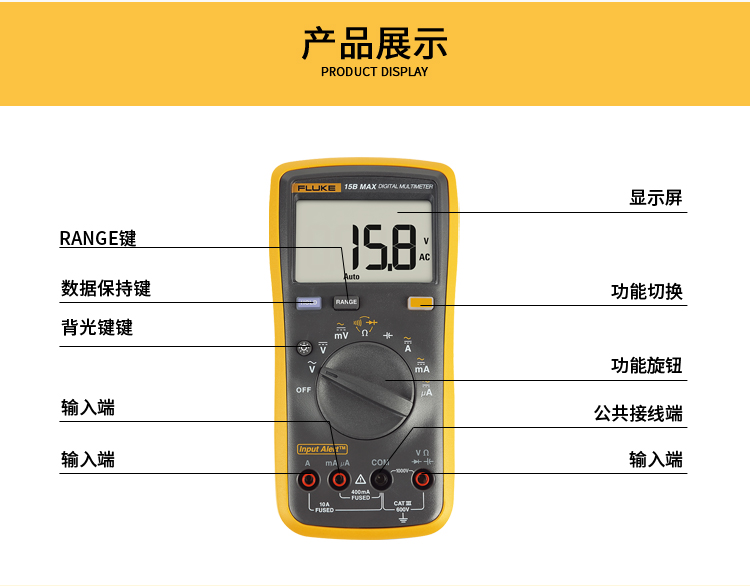 福禄克(FLUKE)15B MAX数字万用表 高精度智能电工表万能表 多用表 FLK-15BMAX-02 单位:台
