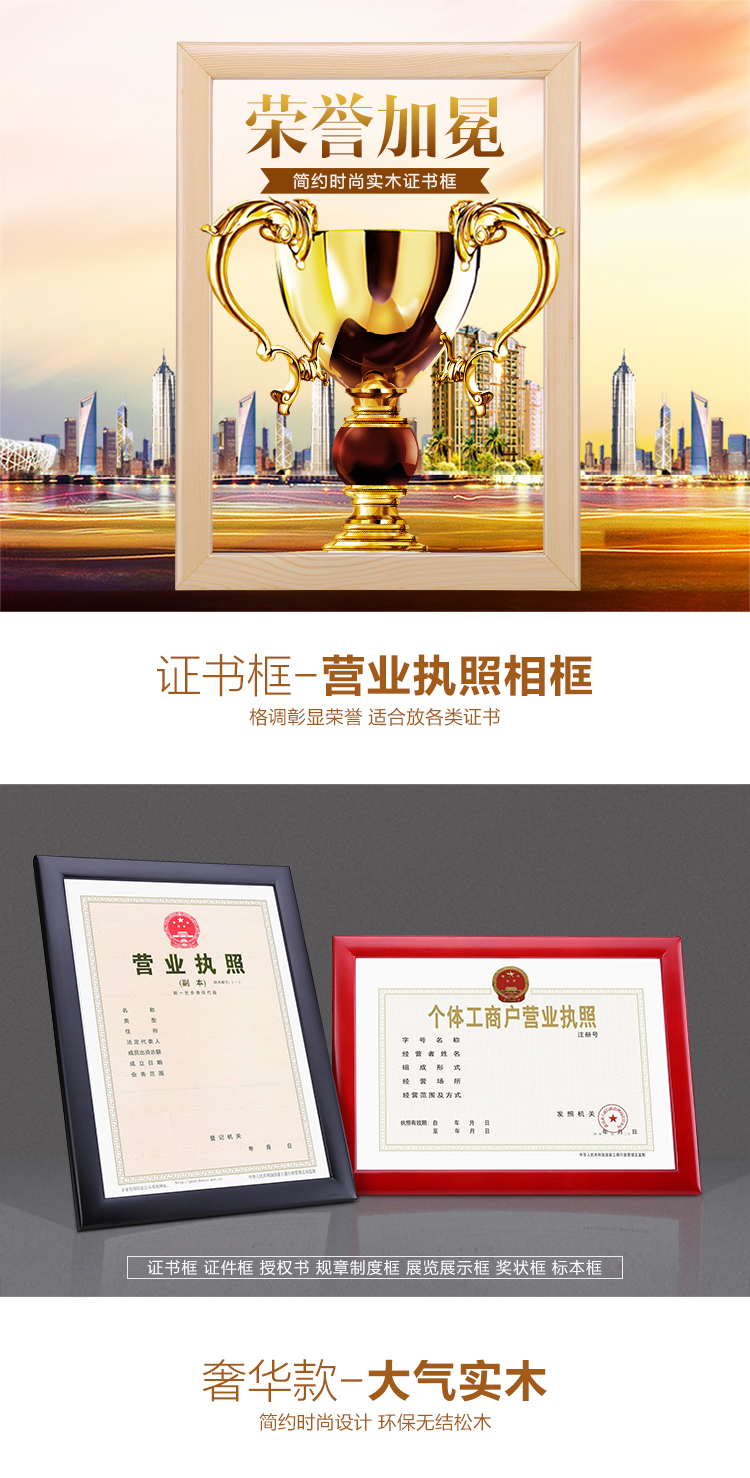 朗格 实木A4证书框 相框摆台挂墙授权书框营业执照框税务登记证