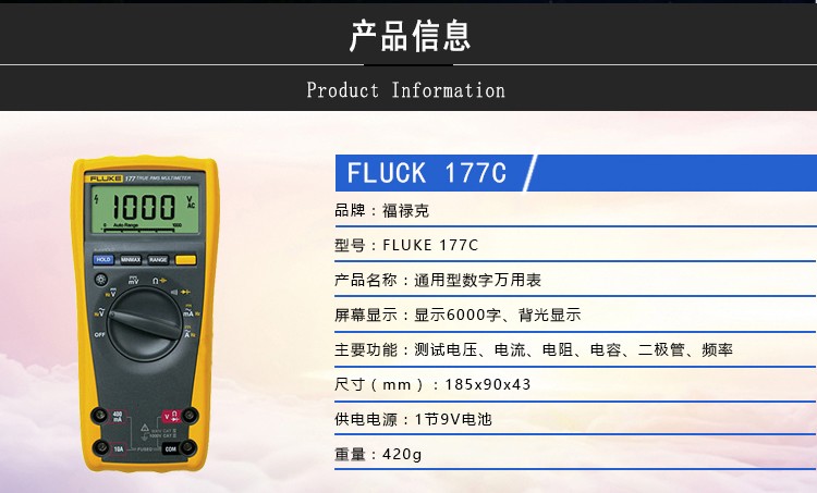 商品名称:福禄克(FLUKE)177C真有效值数字万用表 1000 V FLUKE-177/CN