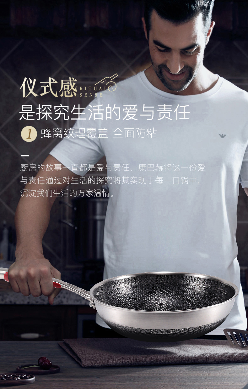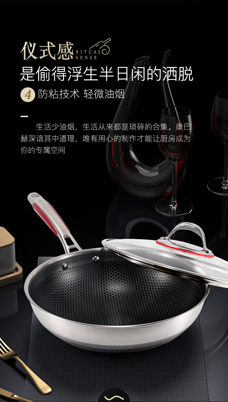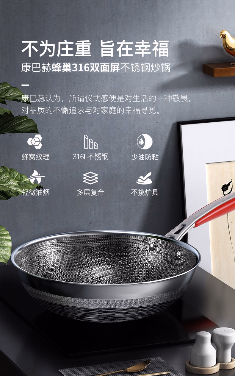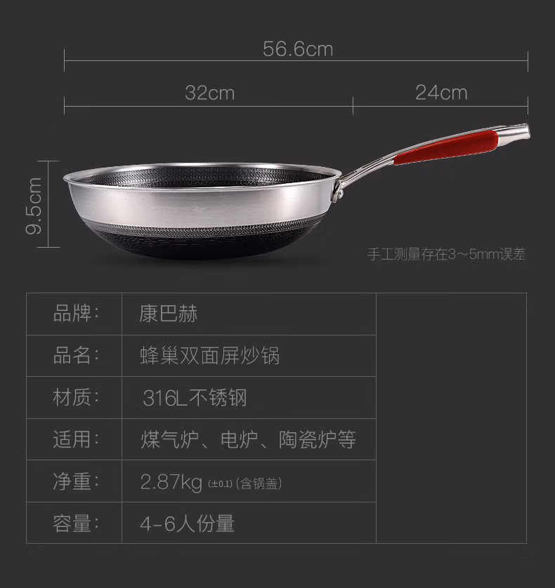 商品名称:康巴赫 德系蜂巢316双面屏不粘炒锅