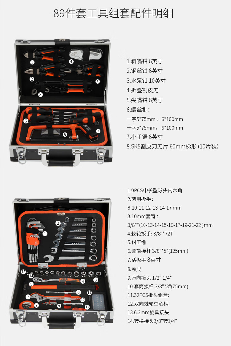 商品名称:卡夫威尔 SS3573E 89件套铝合金箱工具组套1套 SS3573E 其他 现货