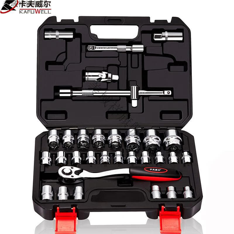 卡夫威尔汽修套装工具箱棘轮扳手套装套管组合修车箱小飞套筒 52件套大飞系列套装 SS9052A01