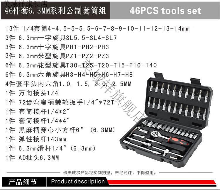 商品名称:卡夫威尔汽修套装工具箱棘轮扳手套装套管组合修车箱小飞套筒 52件套大飞系列套装 SS9052A01