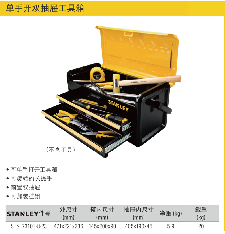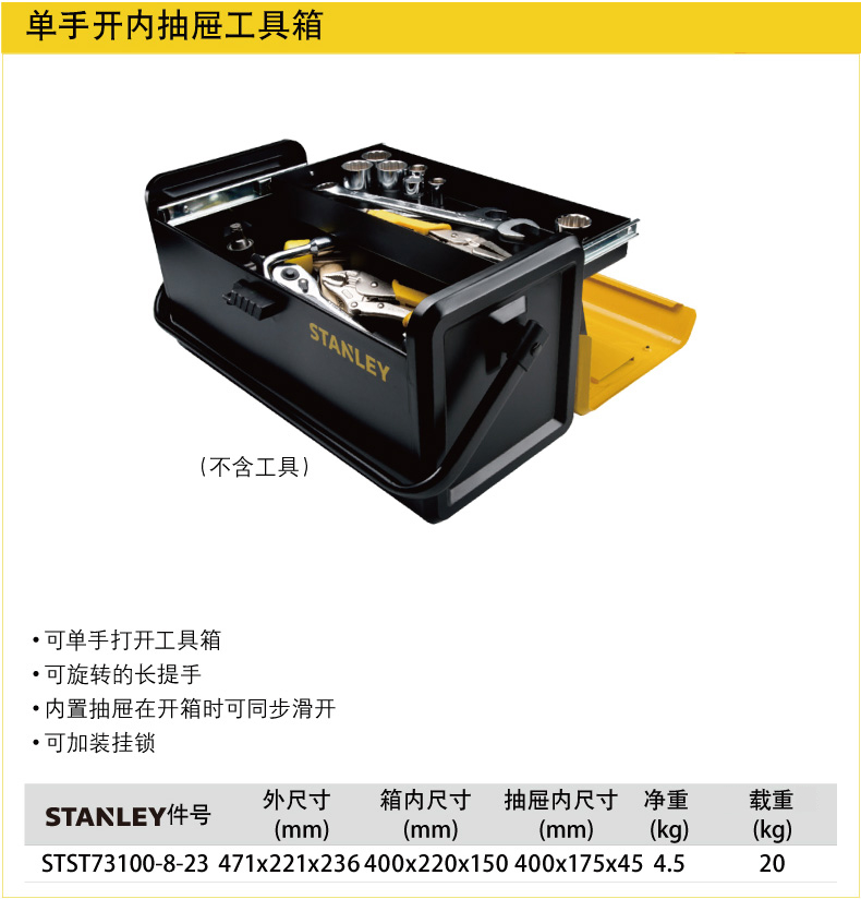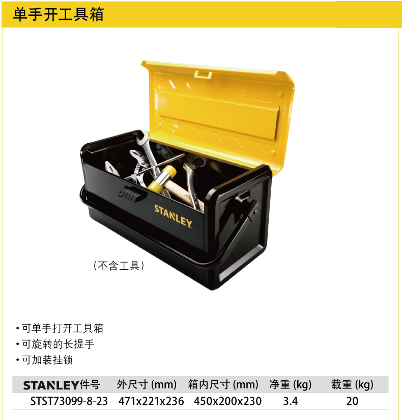 商品名称:STANLEY/史丹利单手开工具箱19寸73099/73100/73101工具盒