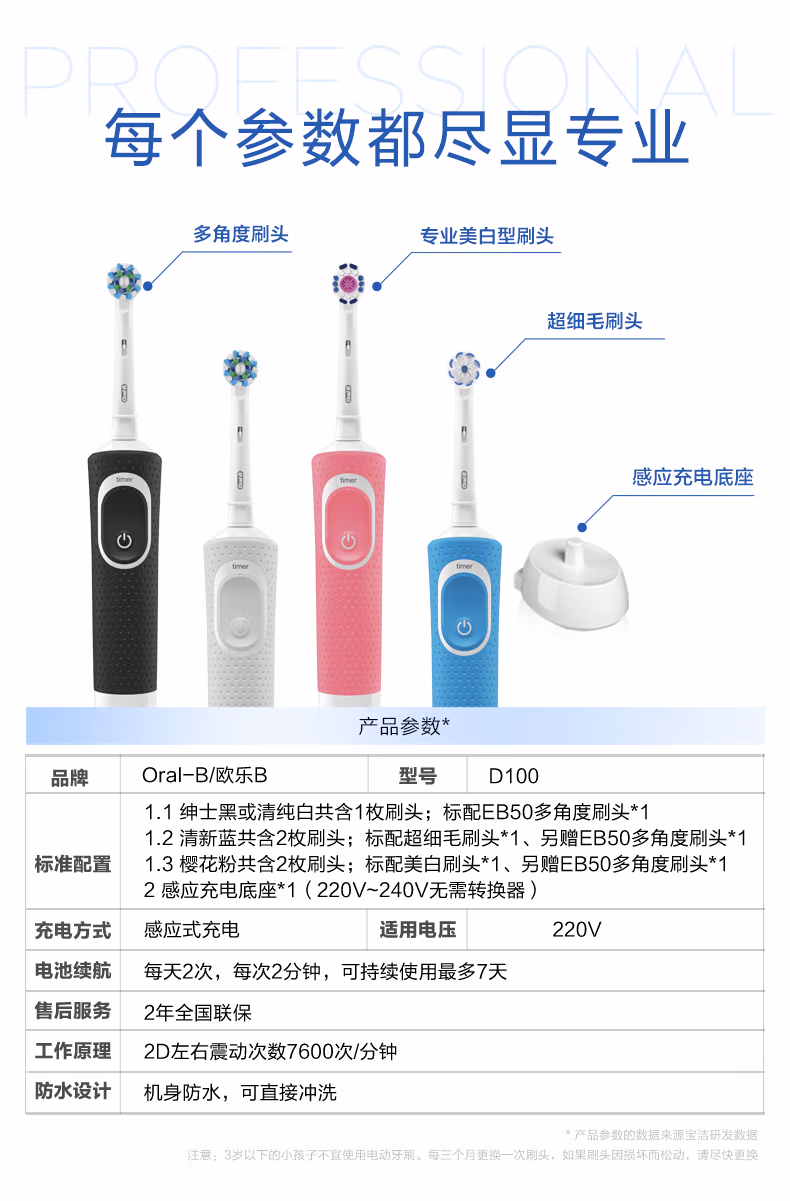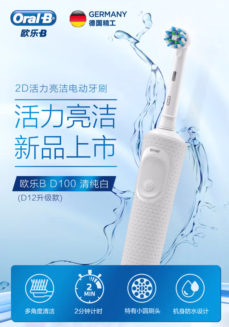 商品名称:欧乐B(Oral-B)-D100-电动牙刷-清纯白-单位:支
