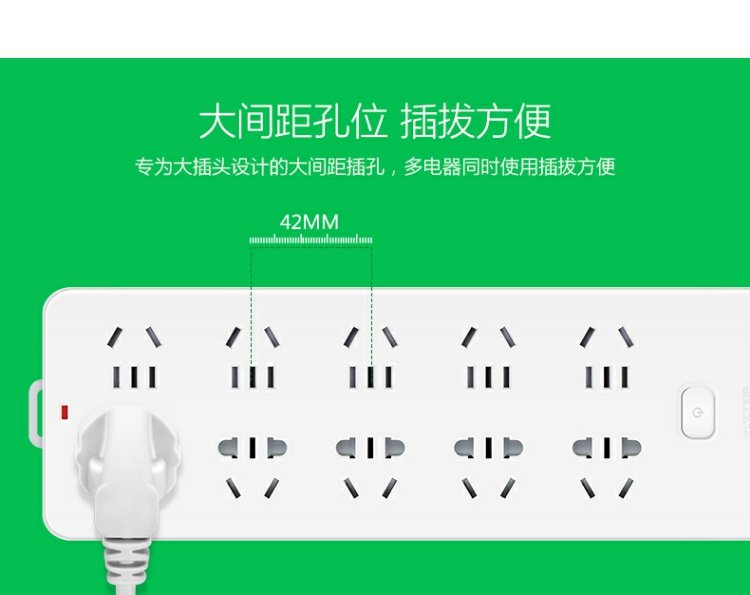 商品名称:公牛 插座接线板插排插线板拖线板过载保六孔十孔位3米 GN-107