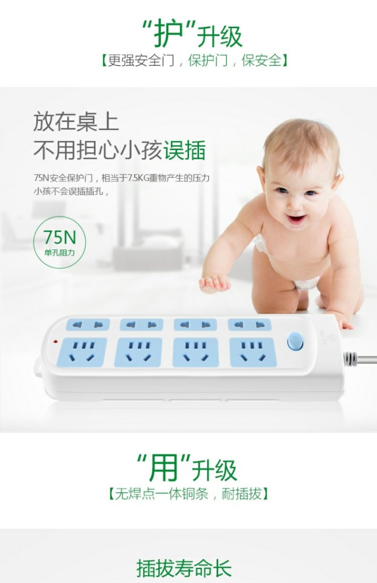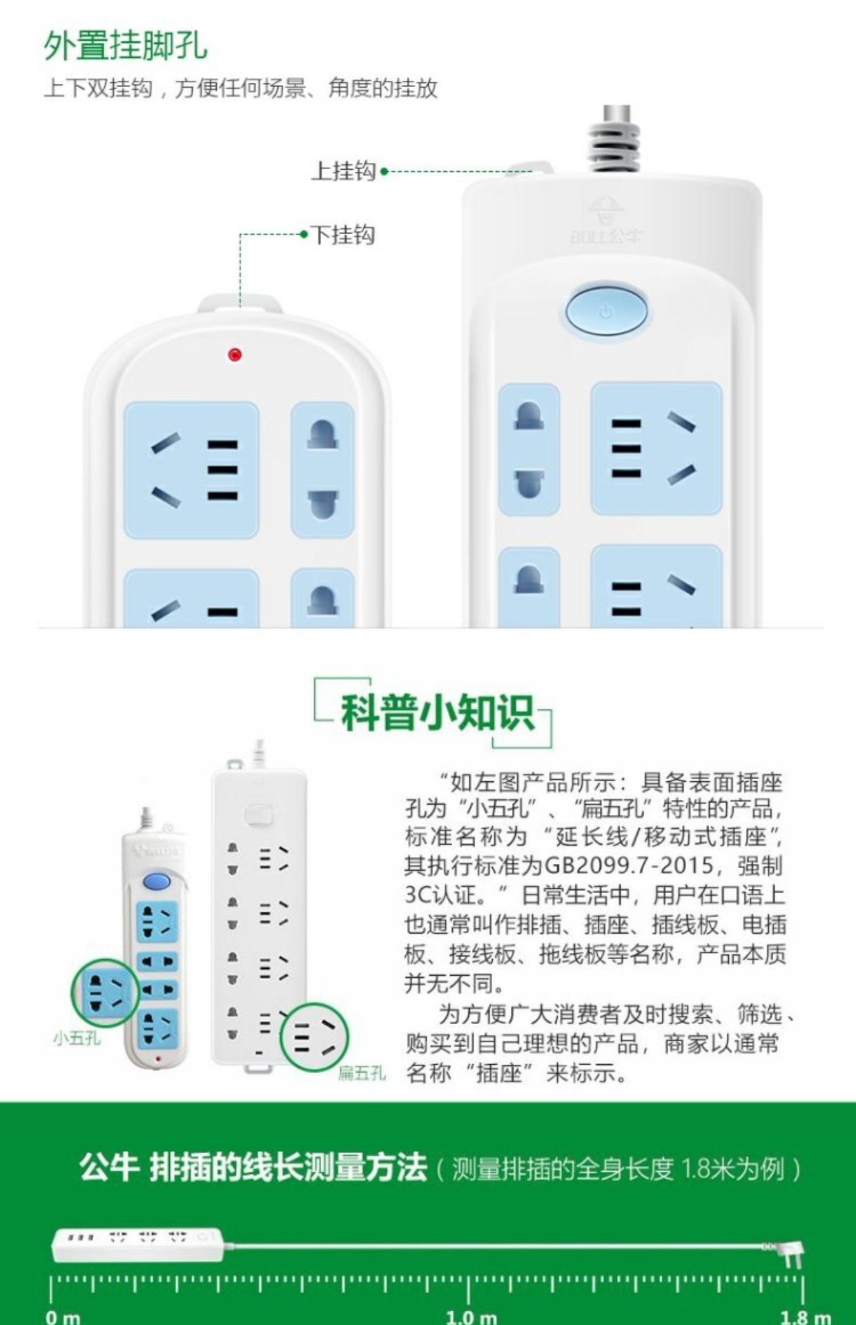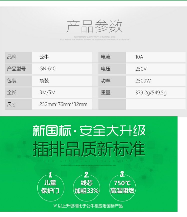 商品名称:公牛 插座插板接线板插排插线板拖线板电源 八插位3米 GN-610