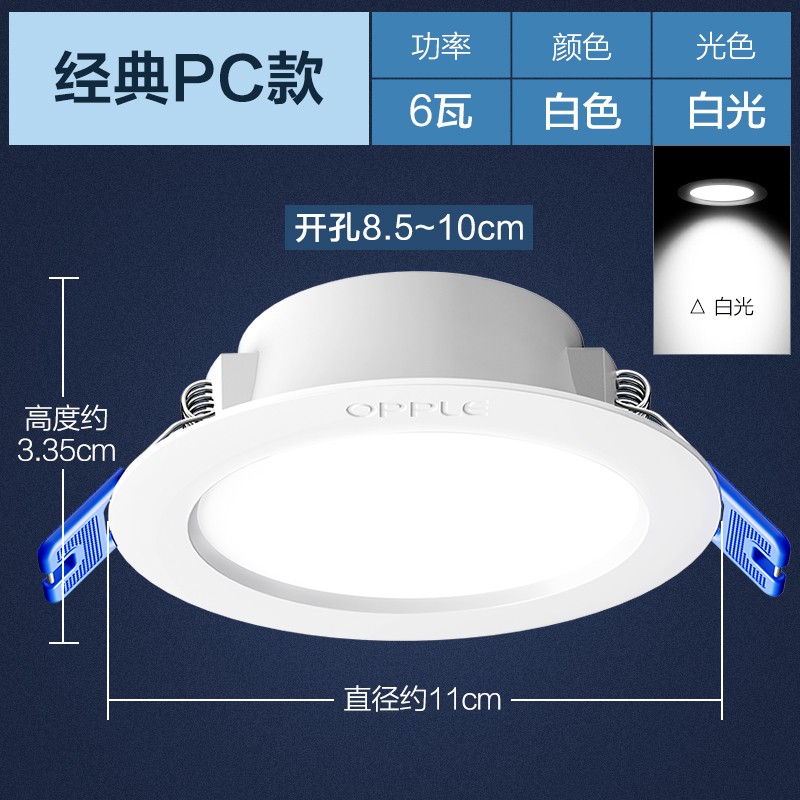 商品名称:欧普照明(OPPLE)led筒灯超薄桶灯客厅吊顶天花灯过道嵌入式洞灯孔灯 6瓦【开孔8.5-10cm】雅白【5700K】单位:个 5个起订