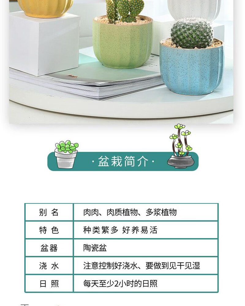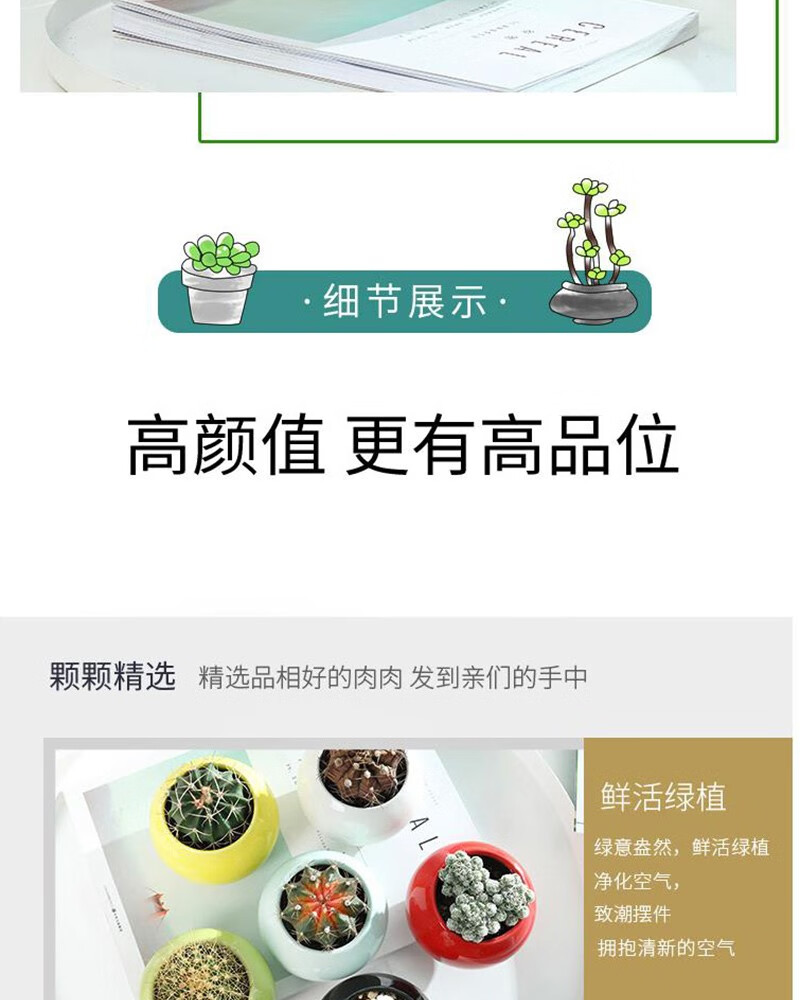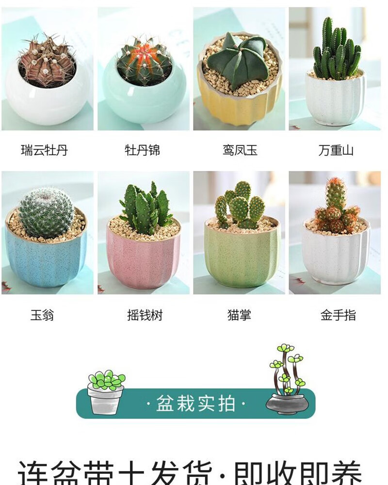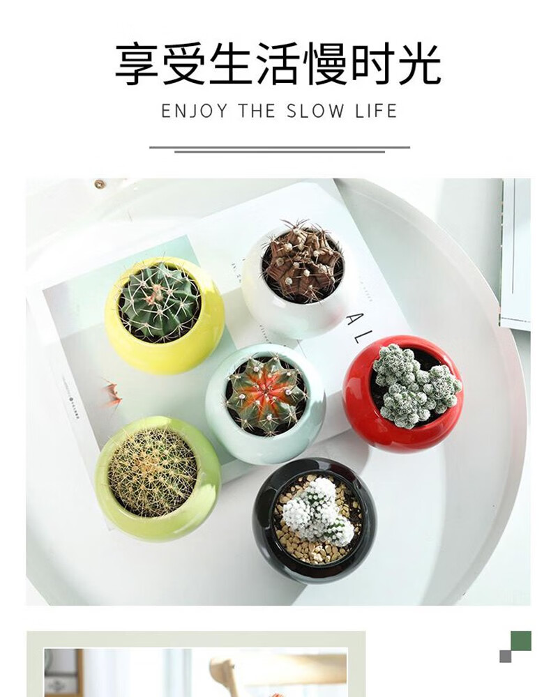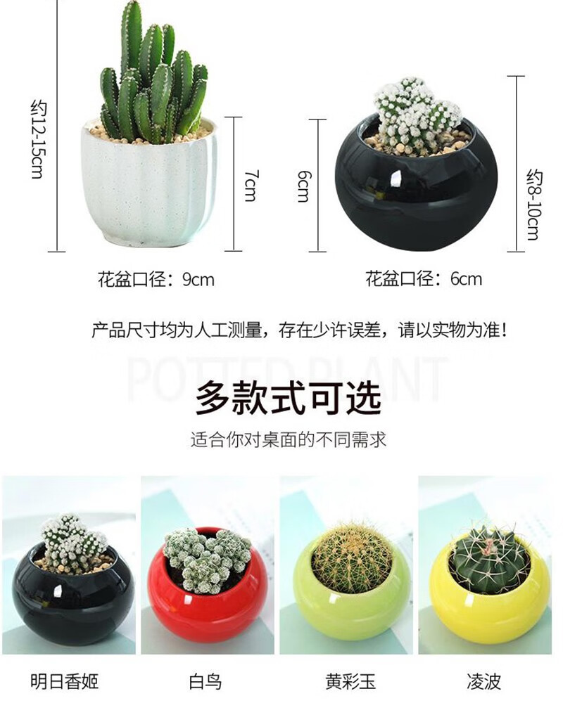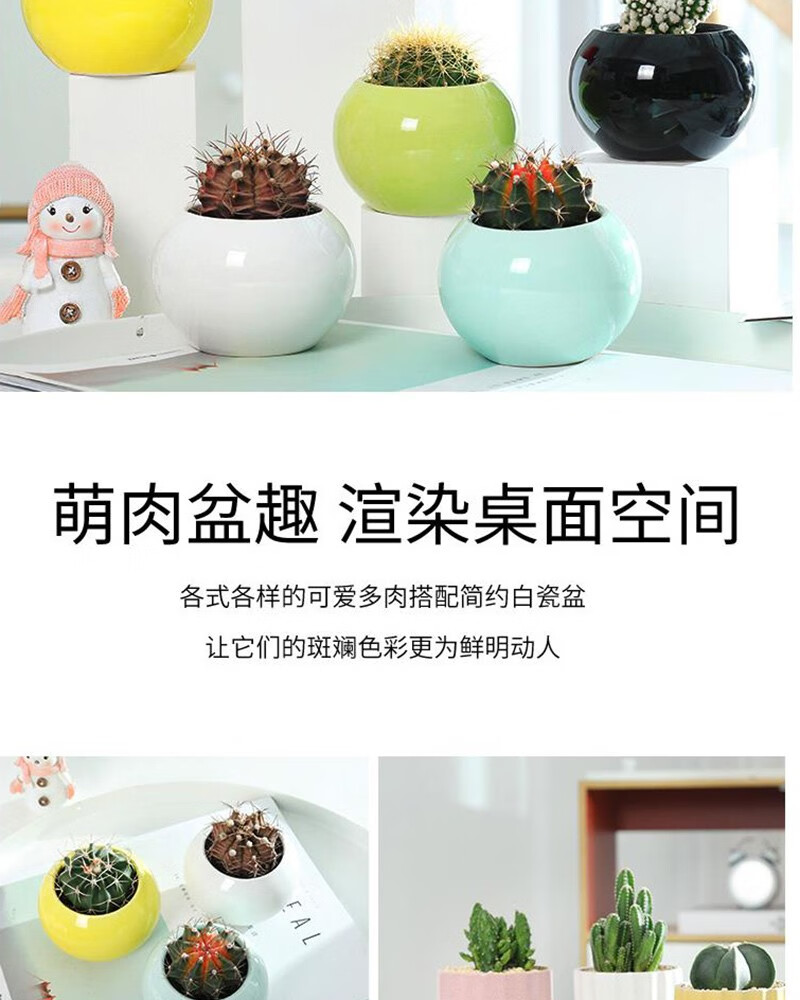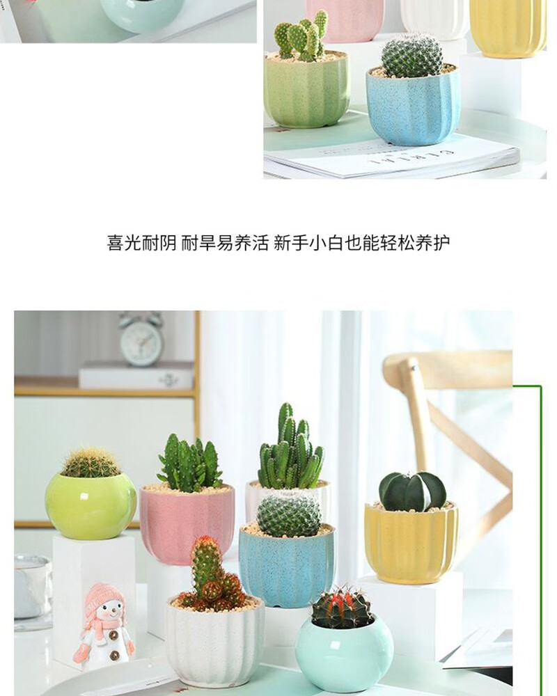 商品名称:晟泰邦 耐旱植物仙人掌类盆栽室内陶瓷盆仙人球桌面小盆栽四季易养 2盆/组(六种颜色可选,下单请备注)3组起订 单位:组