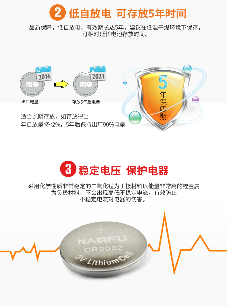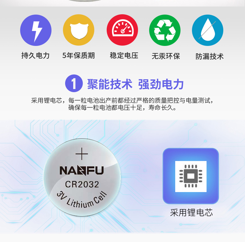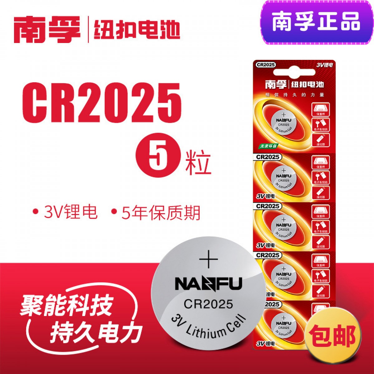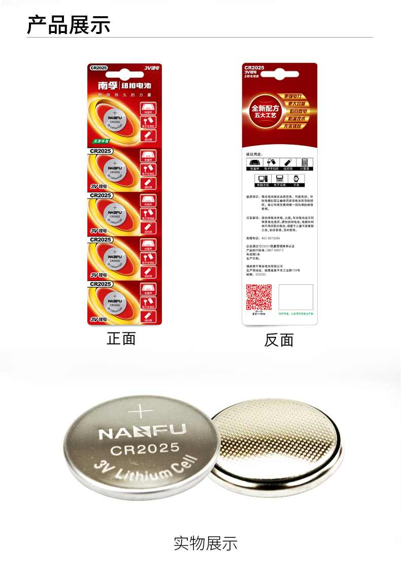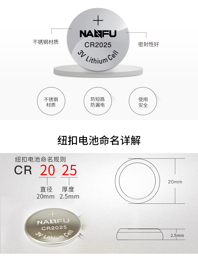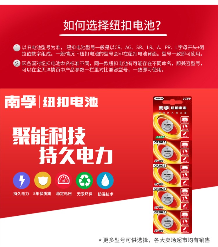 商品名称:南孚 纽扣电池圆形扣式5粒 CR2025