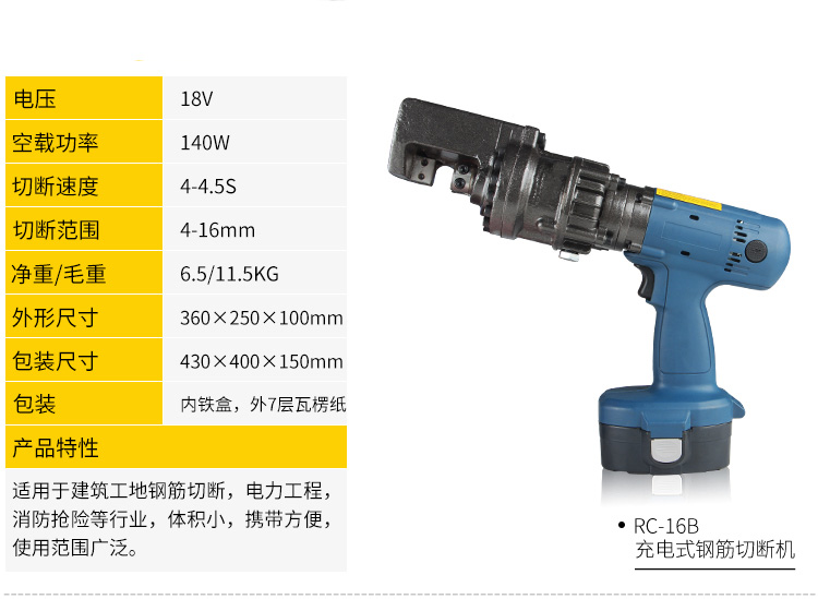 商品名称:春和 充电式钢筋切断机 便携式电动液压切断机 充电式钢筋剪高空 RC-16B