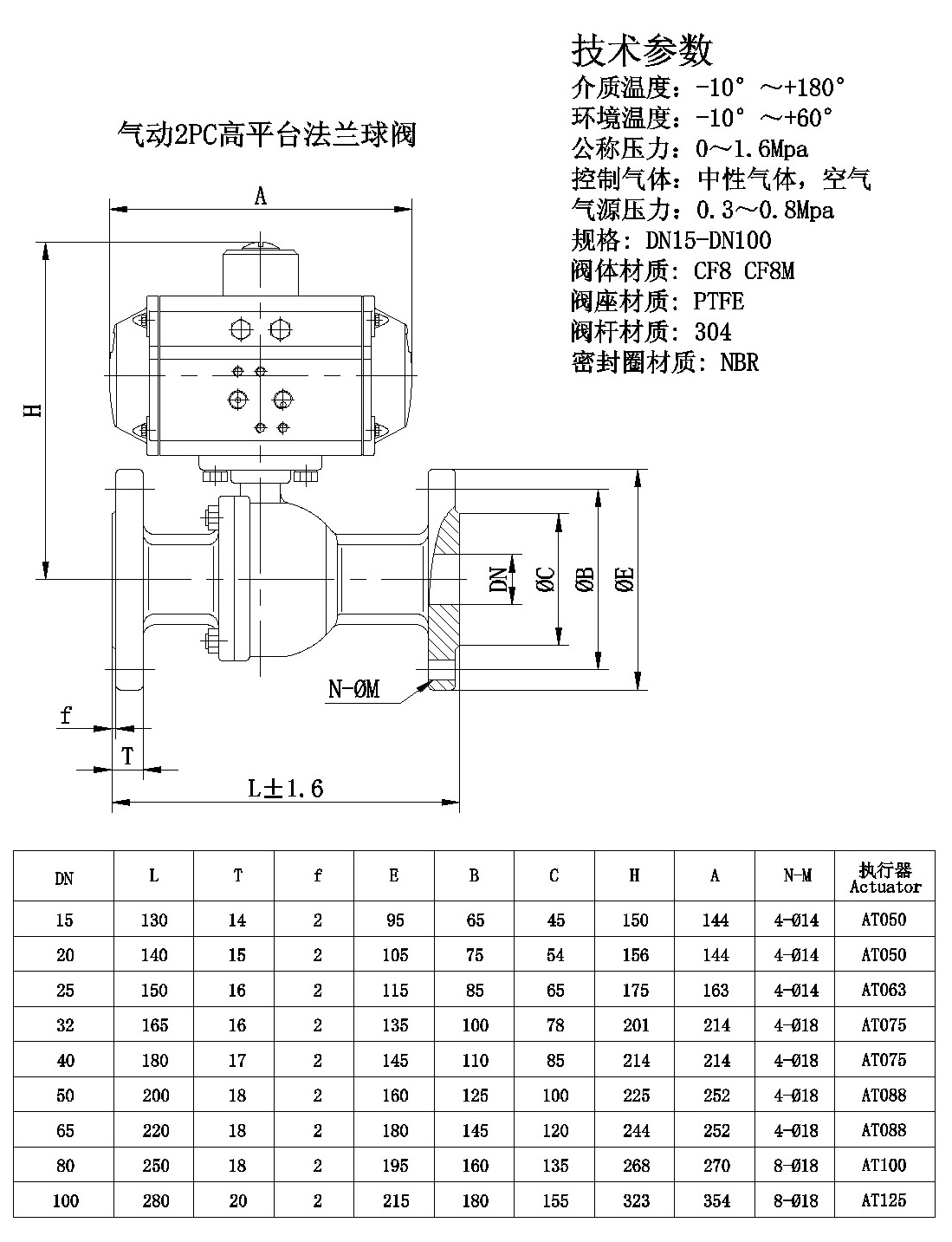 商品名称:春合 不锈钢304气动法兰连接球阀|高平台气动球阀 Q641F-16P