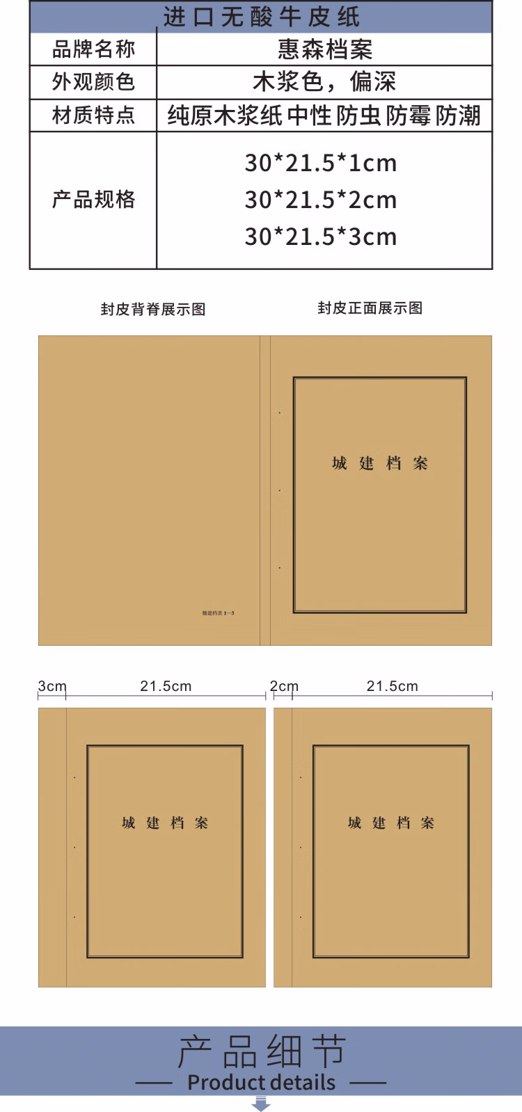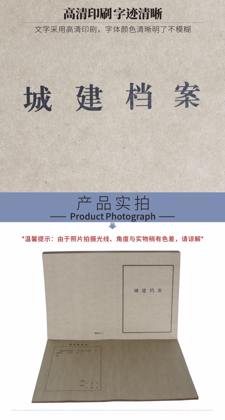 商品名称:惠森档案 封皮 城建档案封皮 城建档案卷皮 档案封皮 牛皮纸 黑色印刷卷皮 新城建封皮 卷皮 3cm 标准城建封皮100套装 单位:组