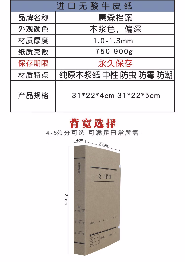 商品名称:惠森档案 会计档案盒 市标会计档案盒 A4会计凭证 档案盒 会计专用档案盒 凭证资料收纳盒 A4会计 5cm 国标会计 10个装