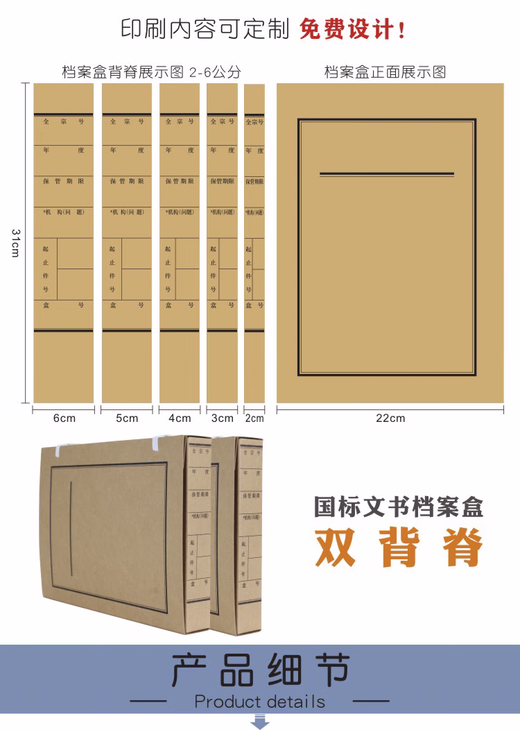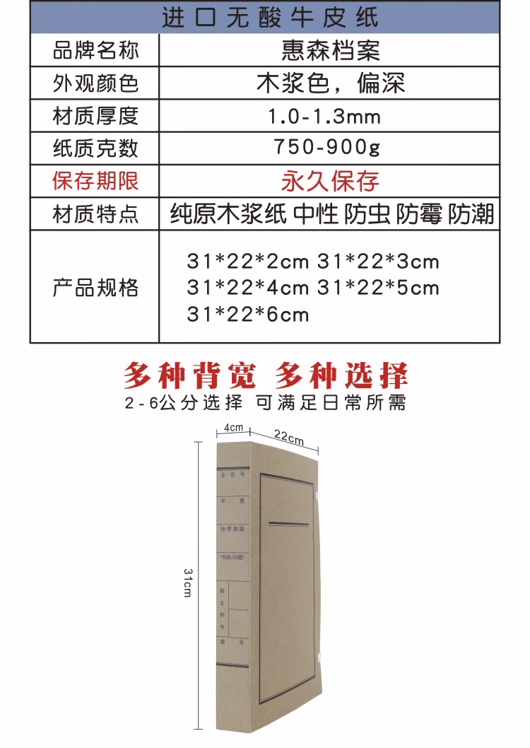 商品名称:惠森档案 国标新文书 无酸纸国标新型文书档案盒 国家标准文书档案盒 市标文书 双背脊文书盒 文书盒 4cm 国标文书 10个装