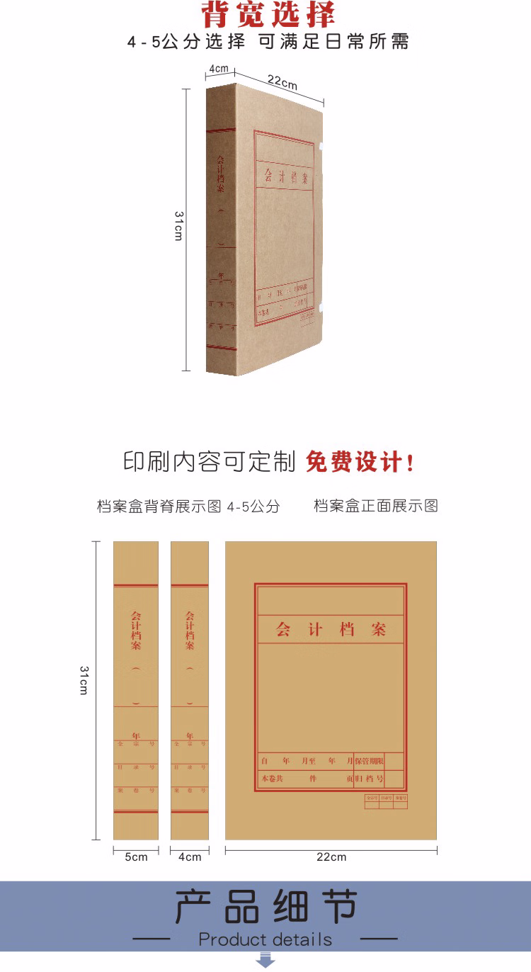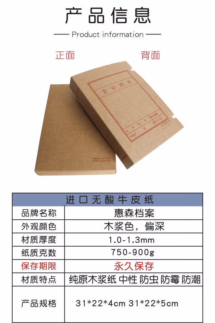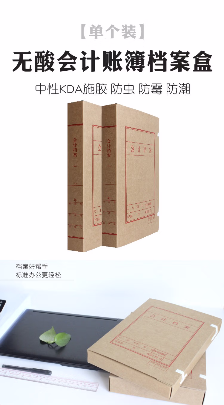 商品名称:惠森档案 省标会计档案盒 A4进口无酸牛皮纸档案盒 财务会计装订盒 会计账簿盒 5cm 省标会计 10个装